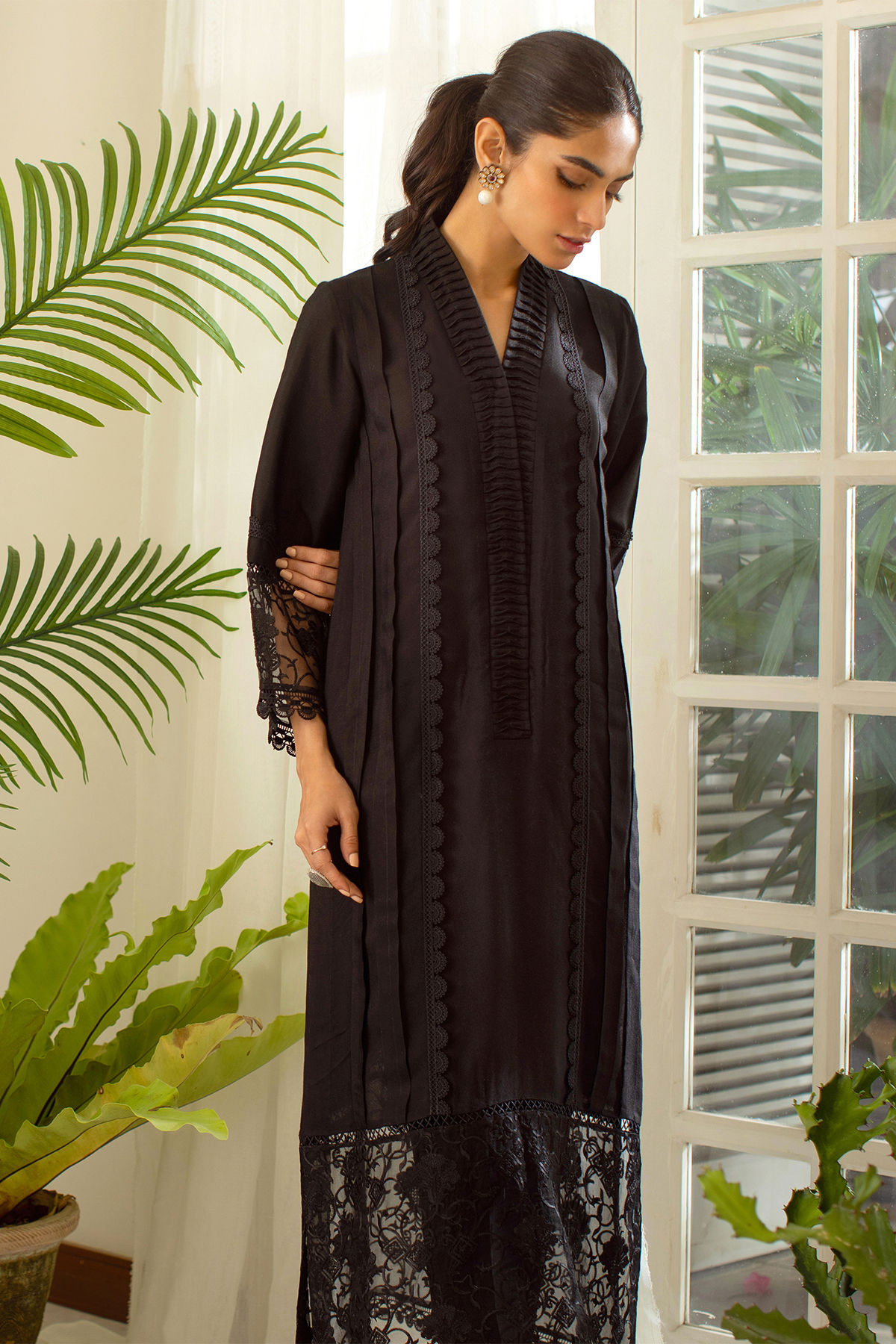 Color: Black Fabric: Cotton Net Work Details: Lace and Pleats Detailing