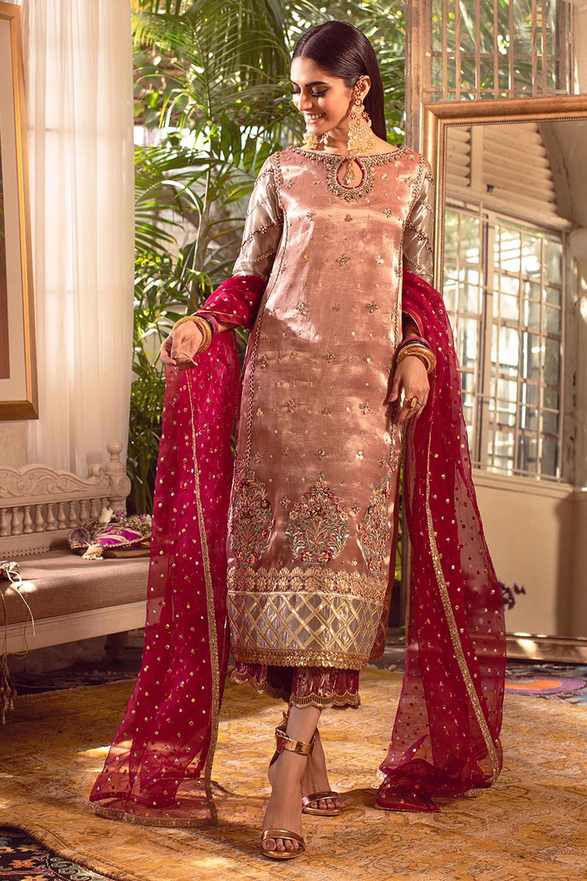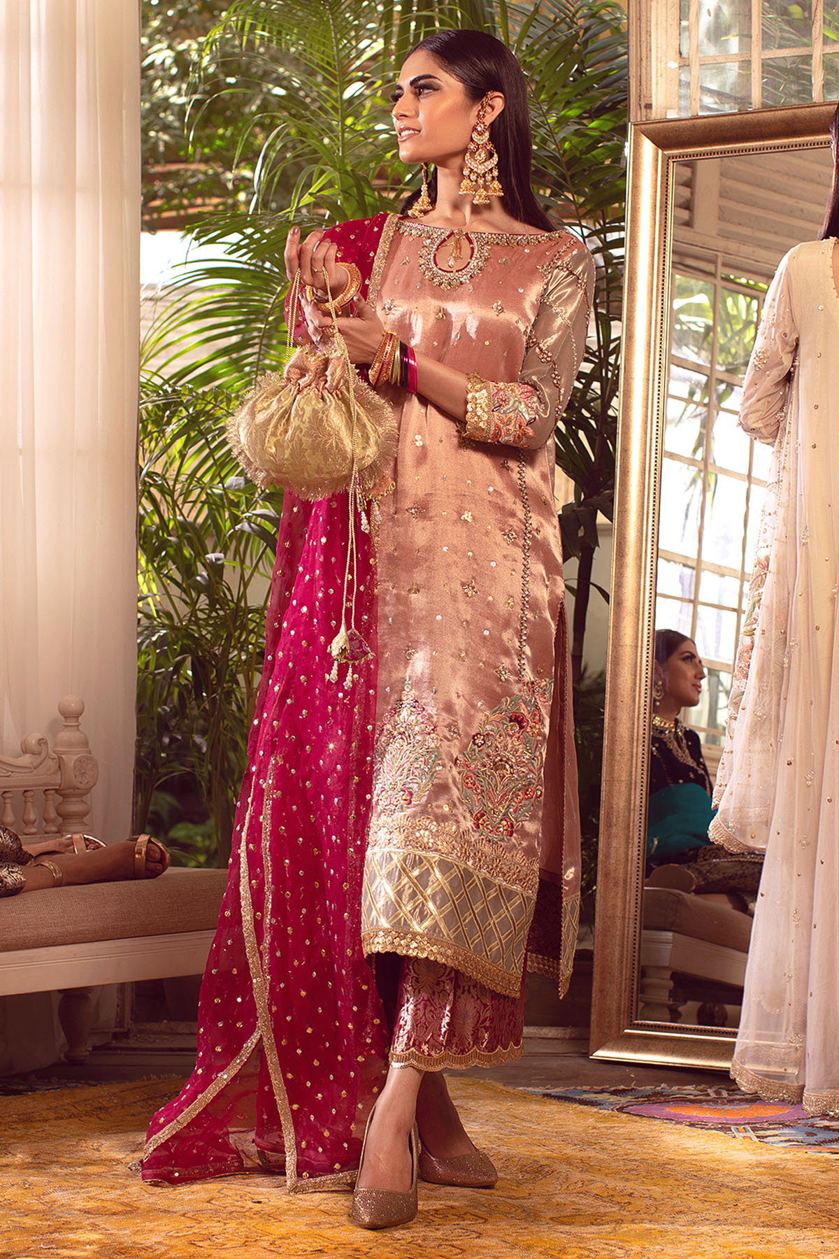 Color: Rose Gold Fabric: Lamé Work Details: Embroidered & Embellished
