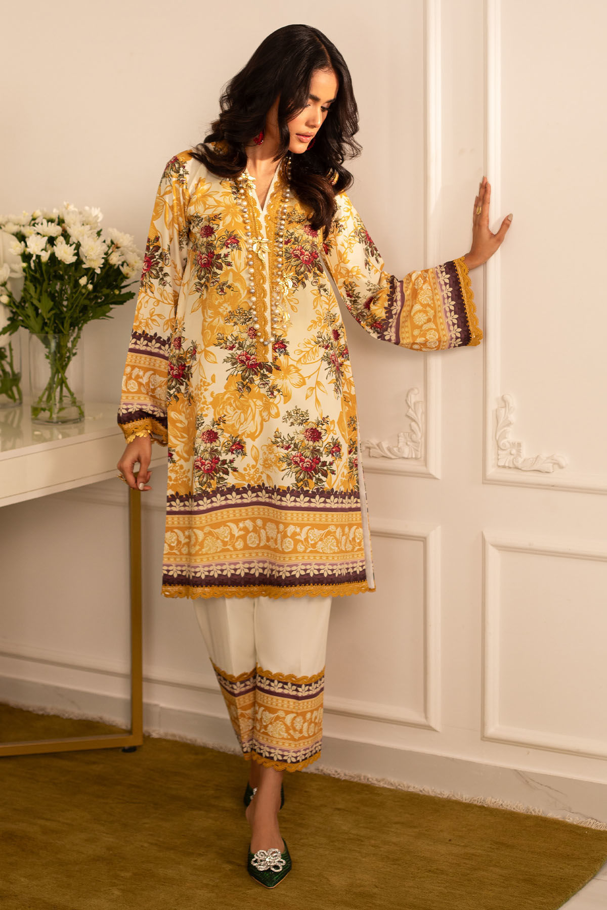 Color: Mustard Fabric: Crepe Silk Work Details: Printed