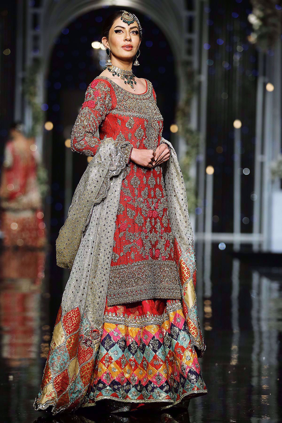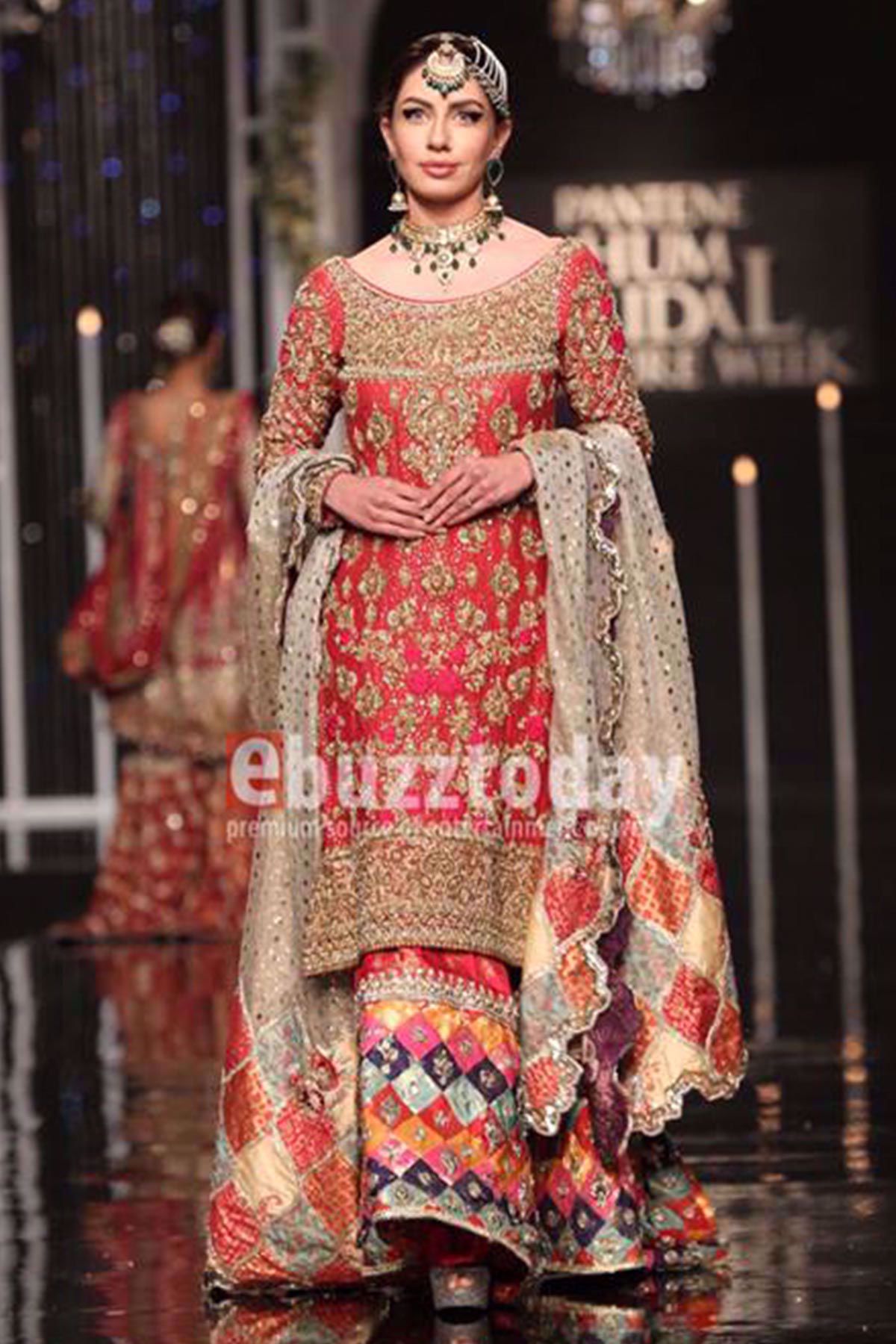 Crimson A line straight with antique gold embroidery with kaamdani details featuring old school hand embroidered details with silk thread resham rosettes. The shirt is paired with chatta patti dhaka pajama with antique and gold handwork border and botis all over. Shimmer net dupatta with scallop’s border and sequins incorporated with chatta patti and silk thread rosettes make this ensemble head turning.