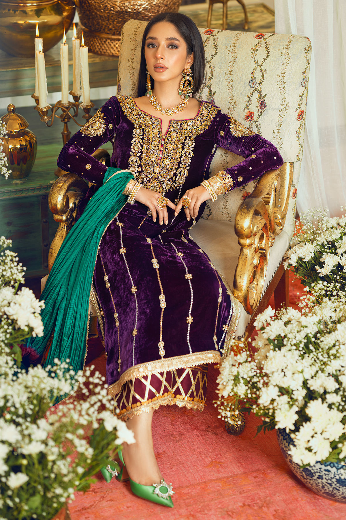 Color: Deep Violet Fabric: Velvet Work Details: Embroidered