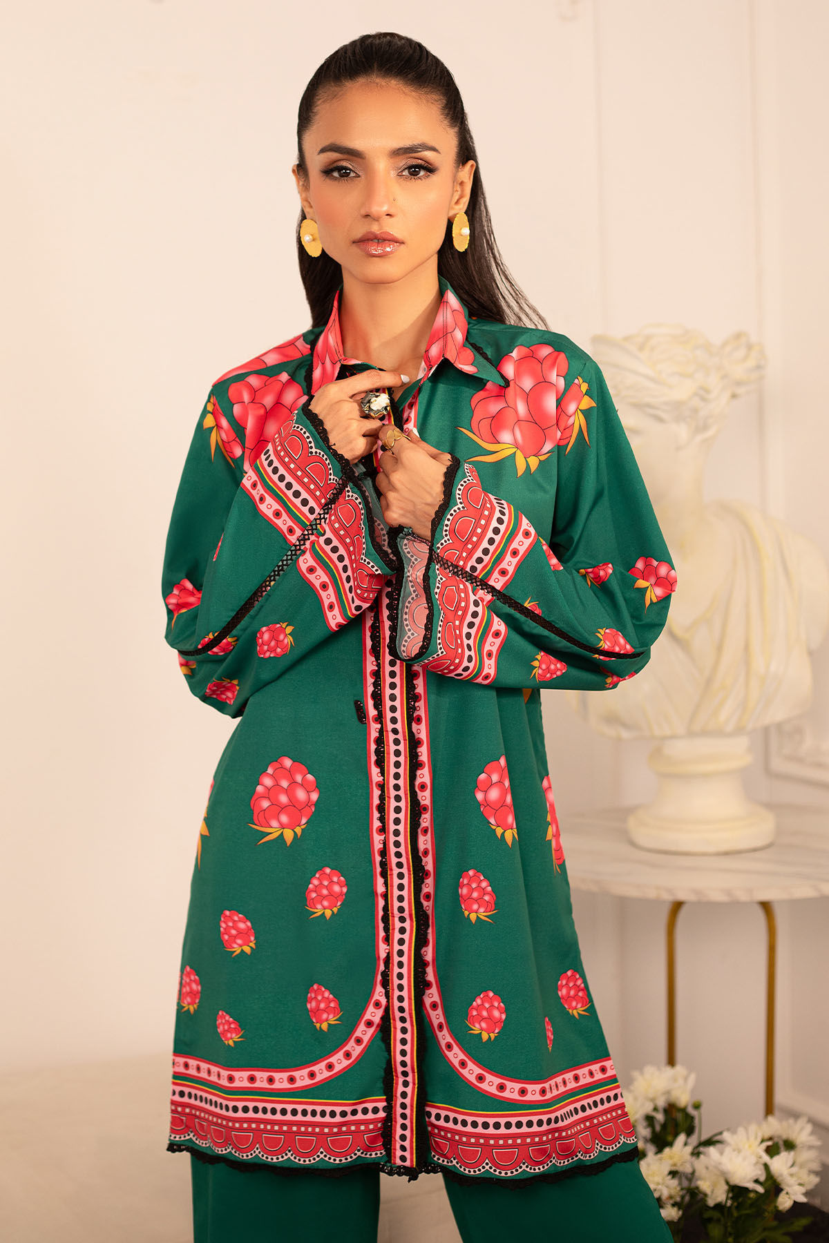 Color: Cherry Green Fabric: Crepe Silk Work Details: Printed