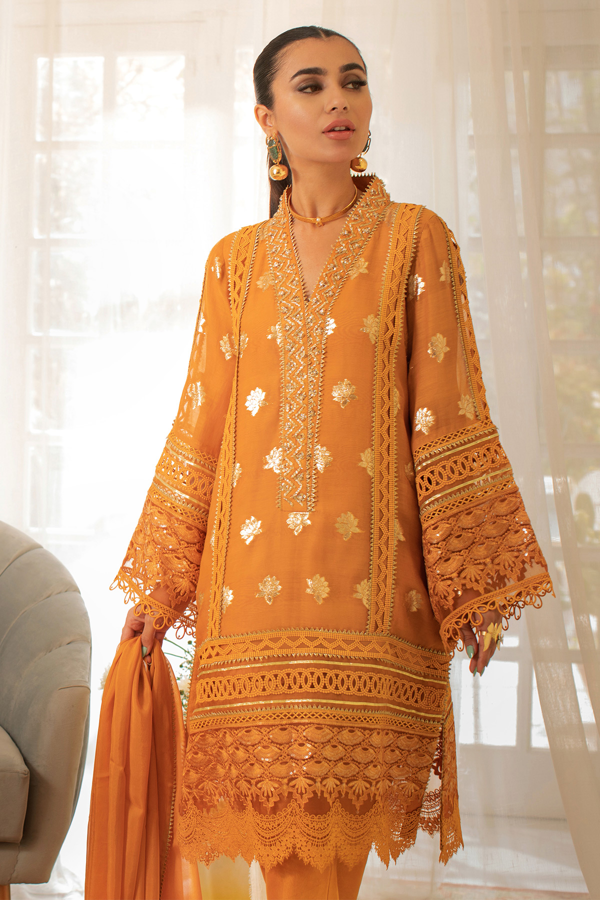 Color: Marigold Fabric: Lorex Work Details: Embellished