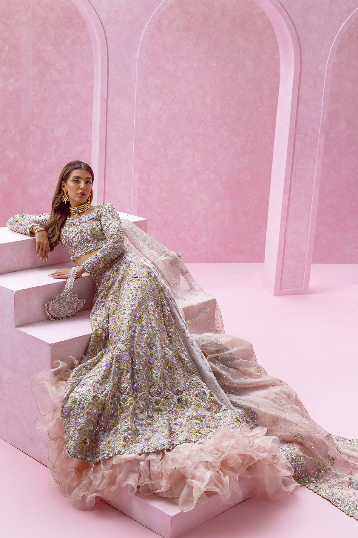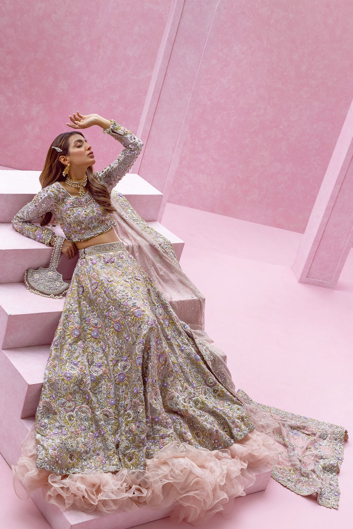 Indulge in a remarkable fusion of contemporary philosophy and our cultural heritage with Emaline, where the allure of this ethereal lehenga harmoniously intertwines with the splendor of our radiant choli for a modern day bride.
