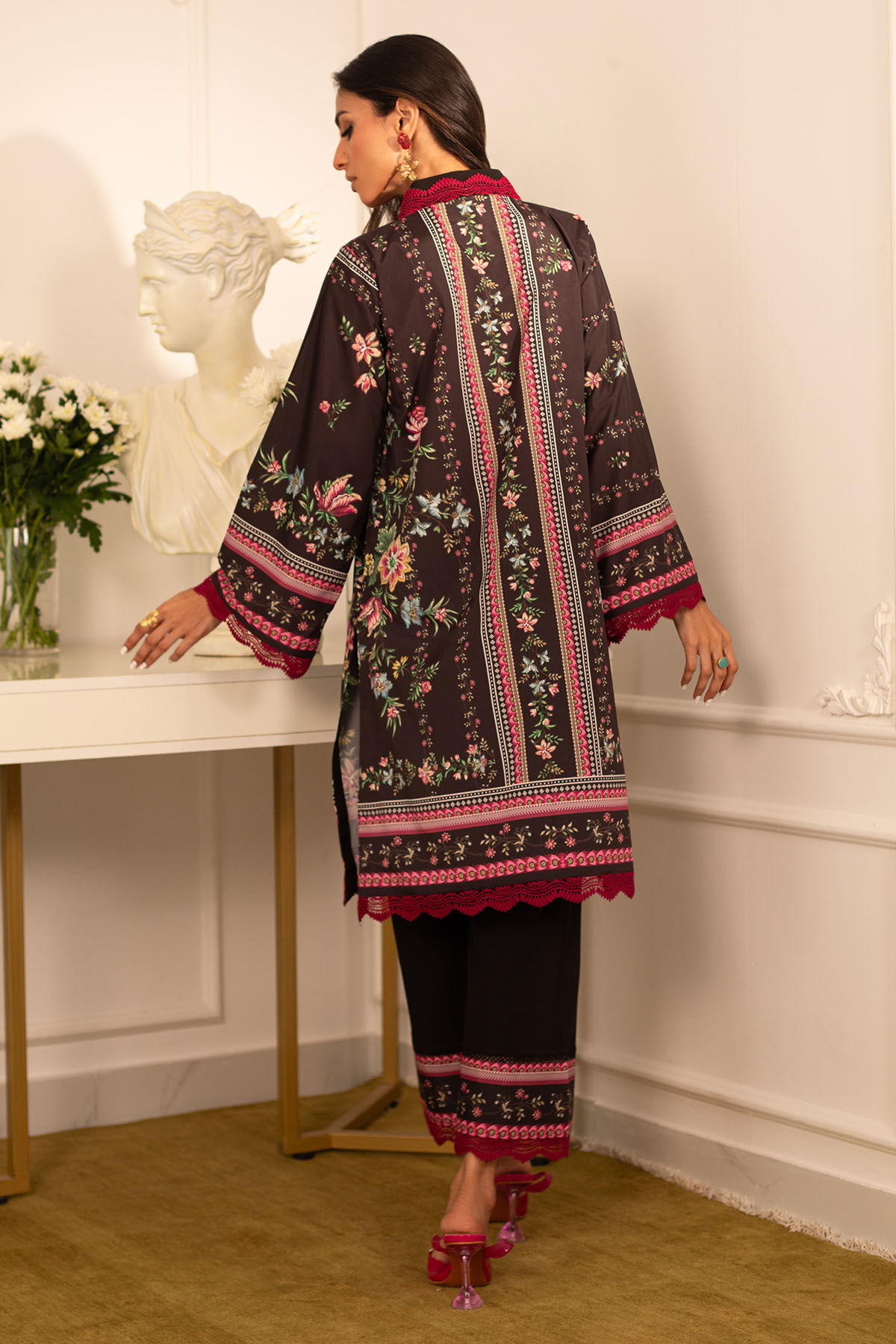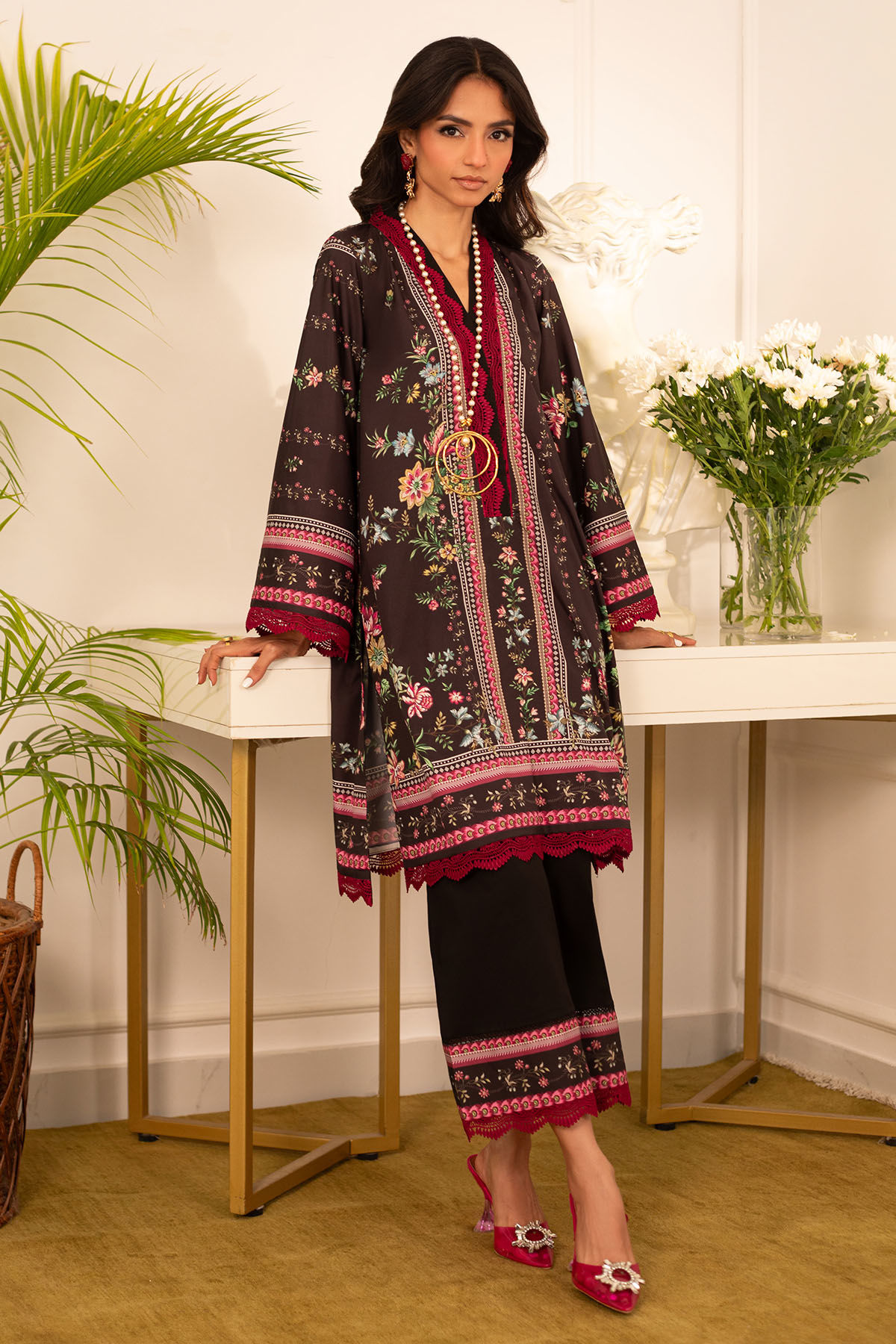 Color: Black and Pink Fabric: Crepe Silk Work Details: Printed
