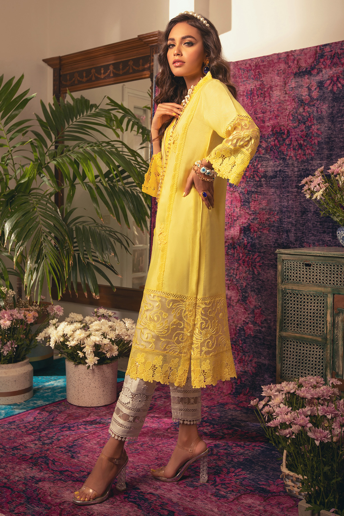 Color: Yellow Fabric: Cotton Net Work Details: Embroidered