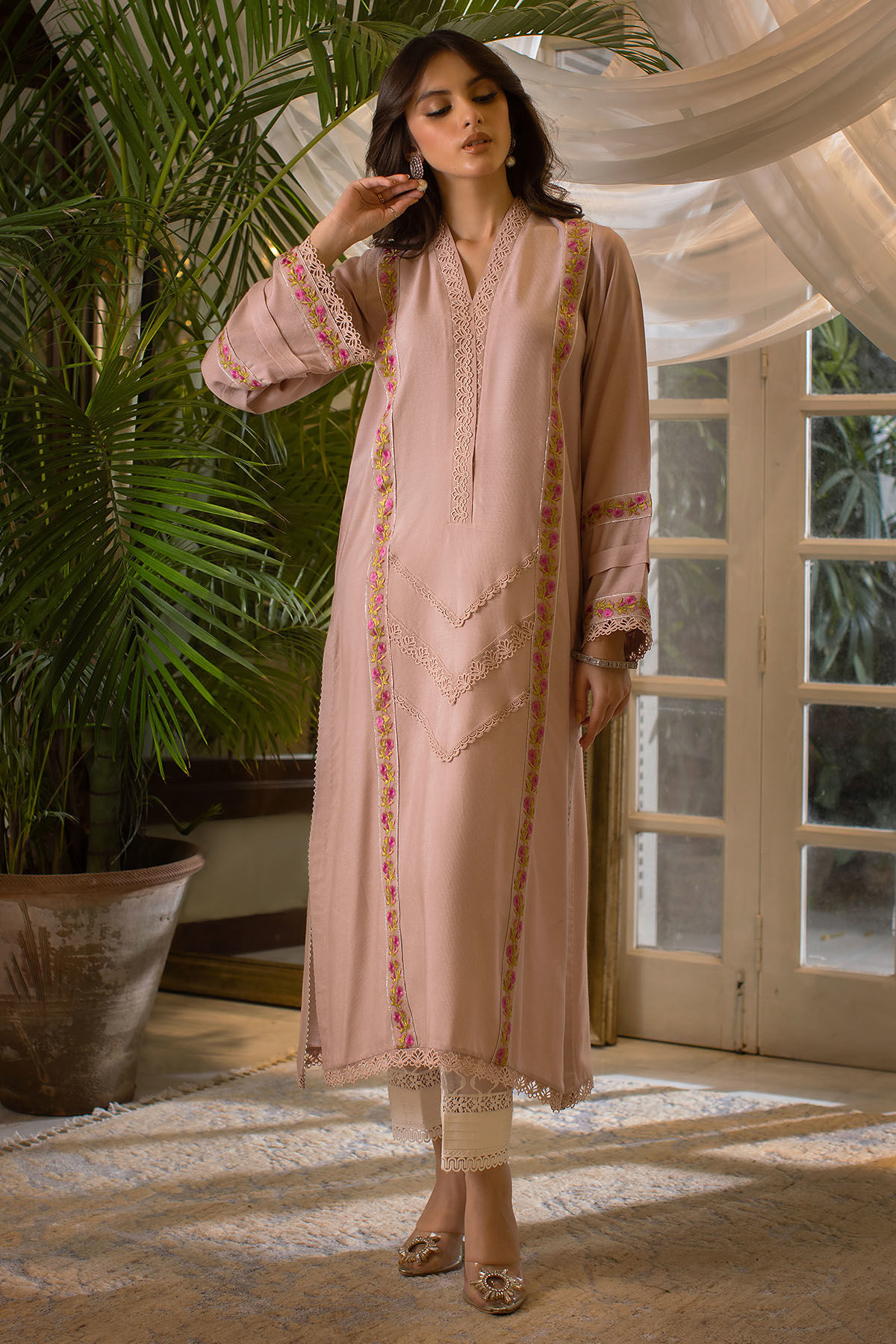 Color: Pink Fabric: Cotton Net Work Details: Embroidered