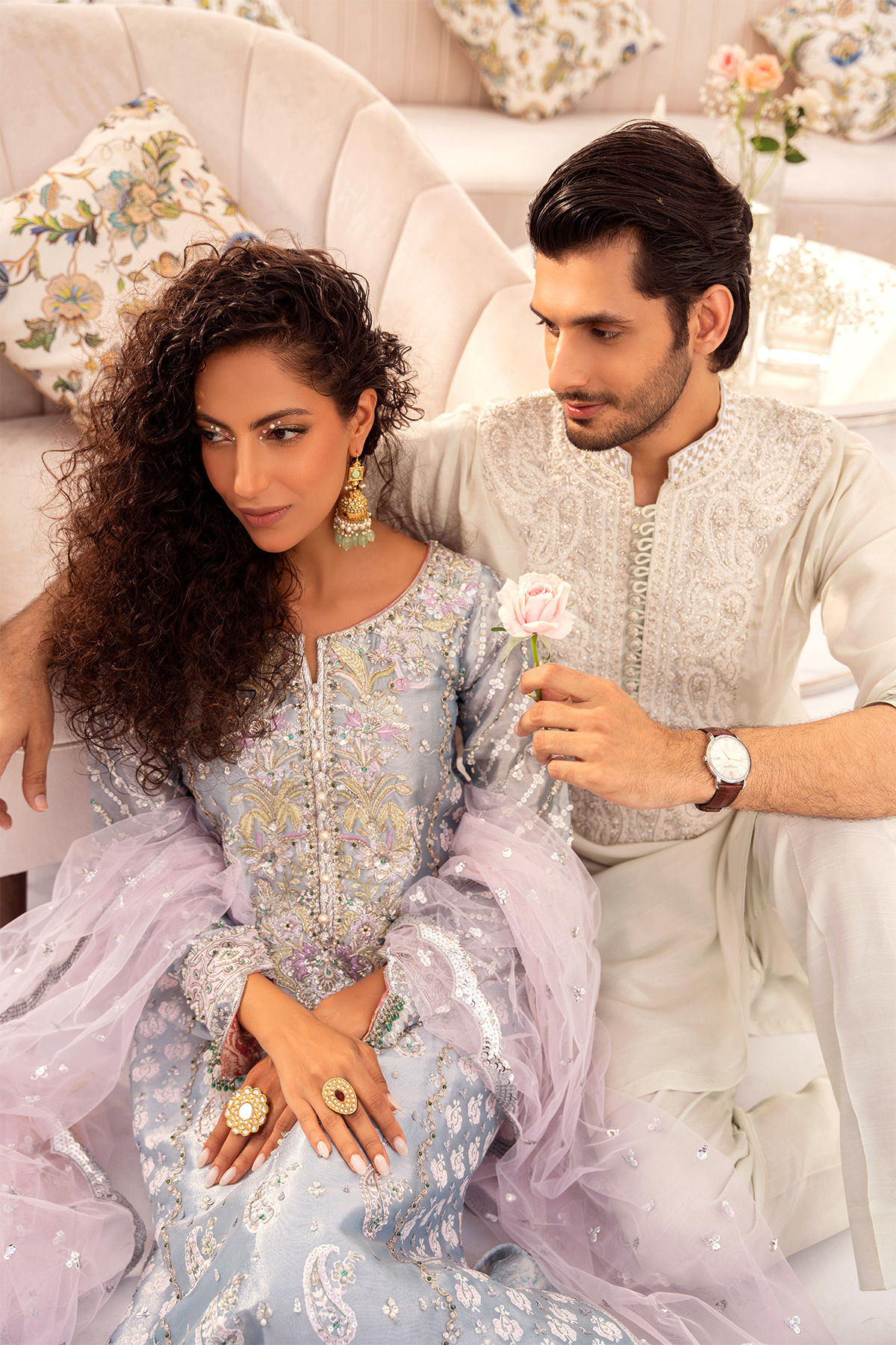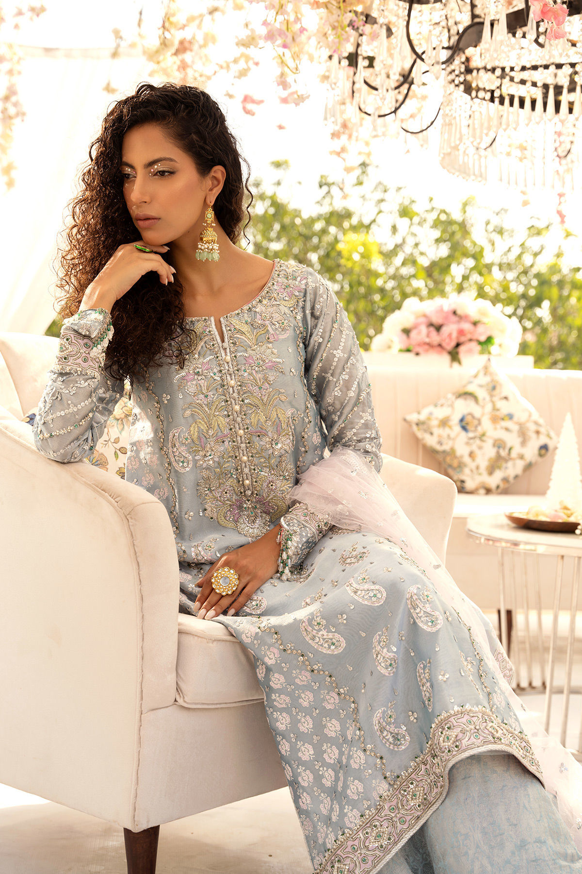 Color: Sea Blue Fabric: Lamé Work Details: Embroidered