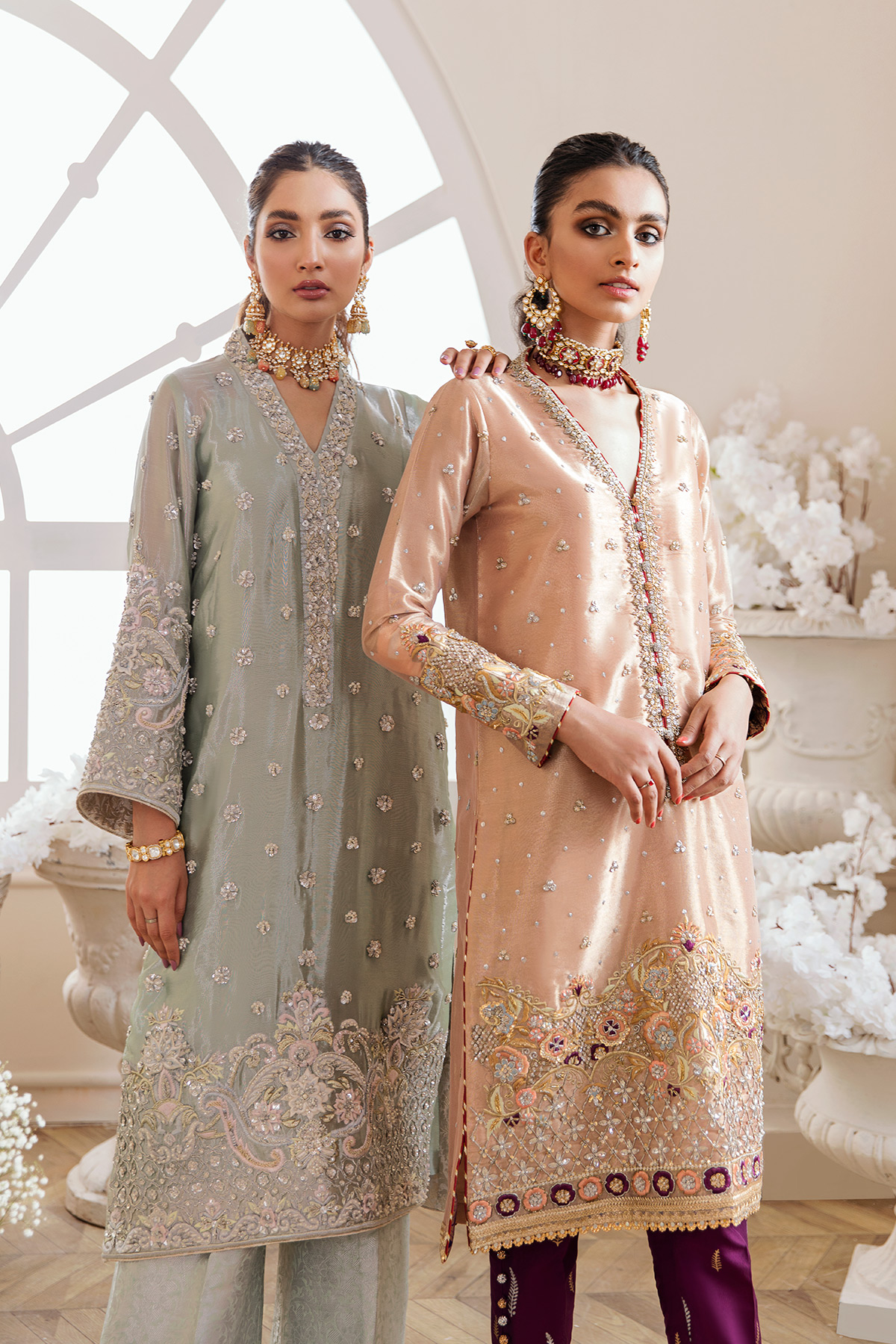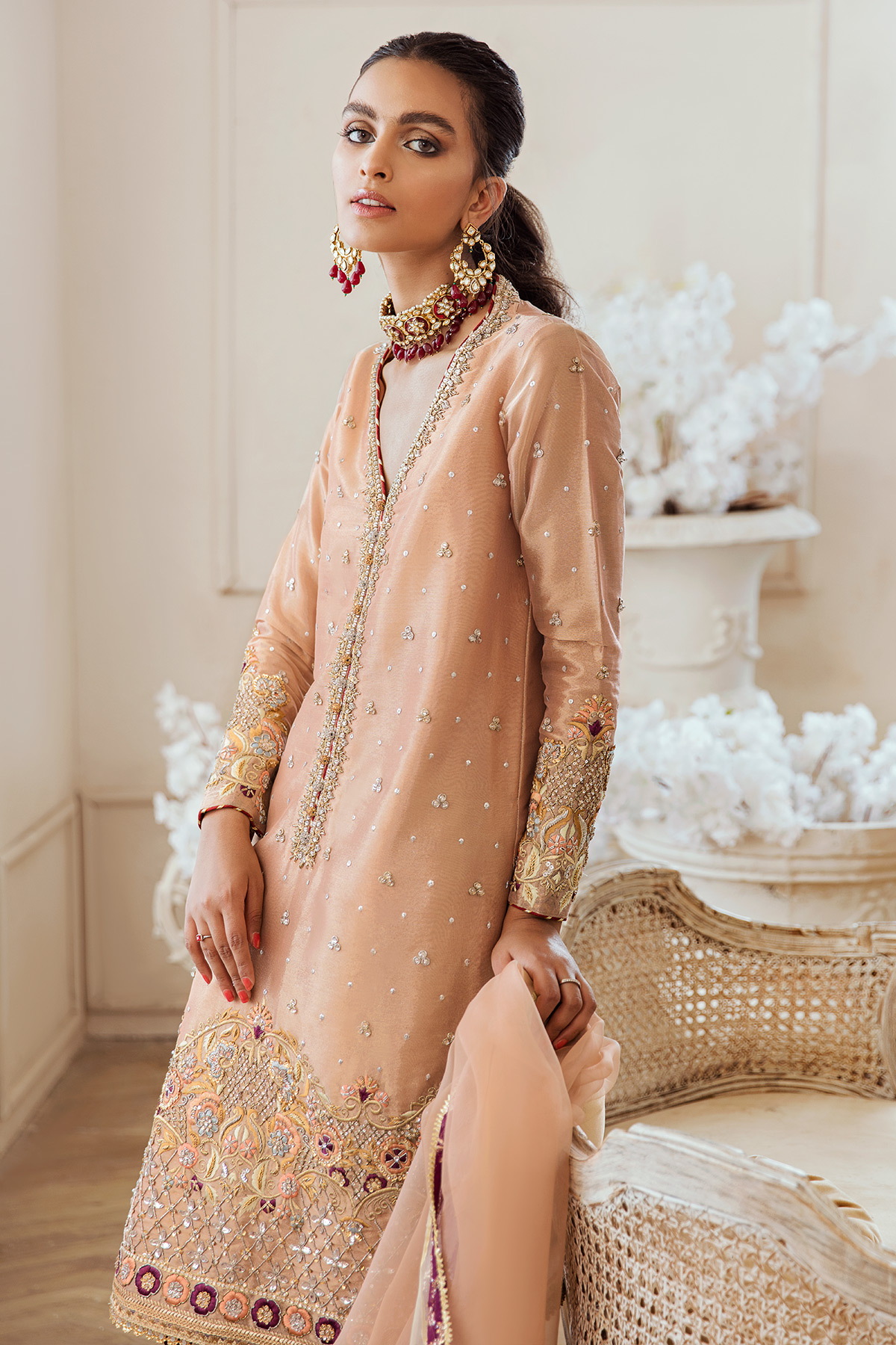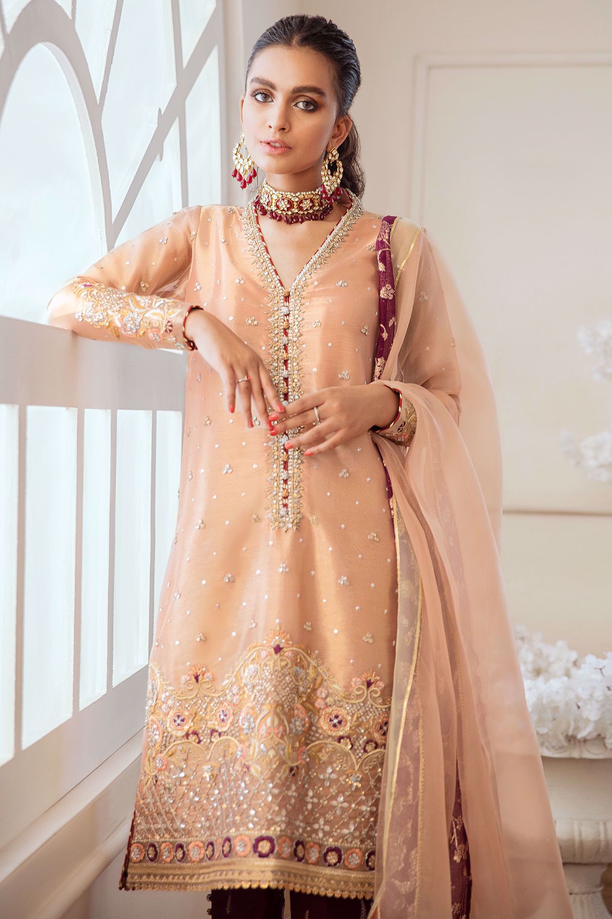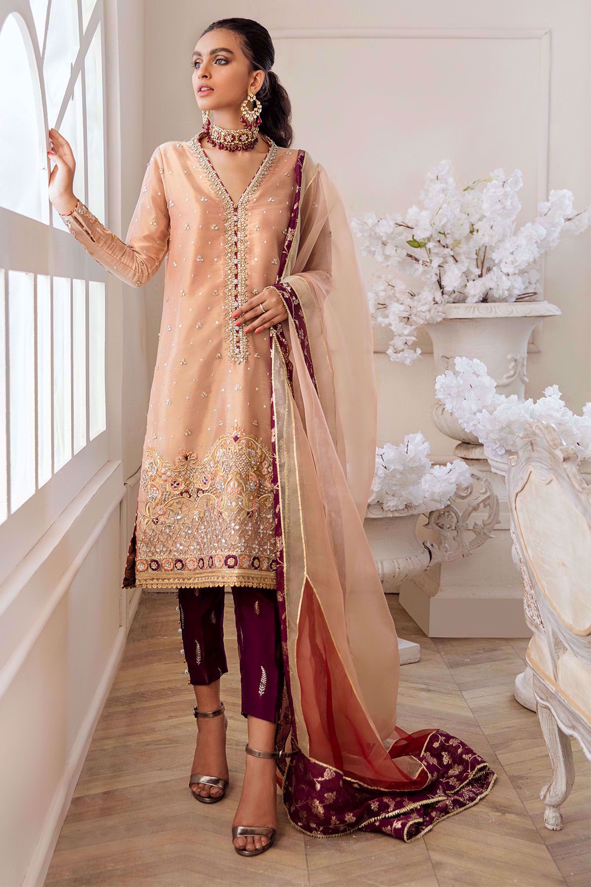 Color: Pink Fabric: Lamé Work Details: Embroidered