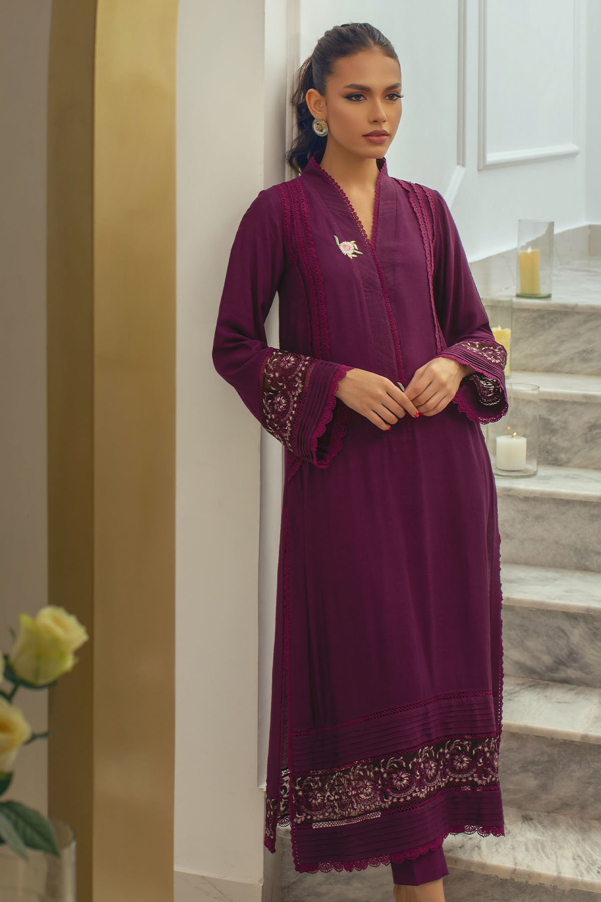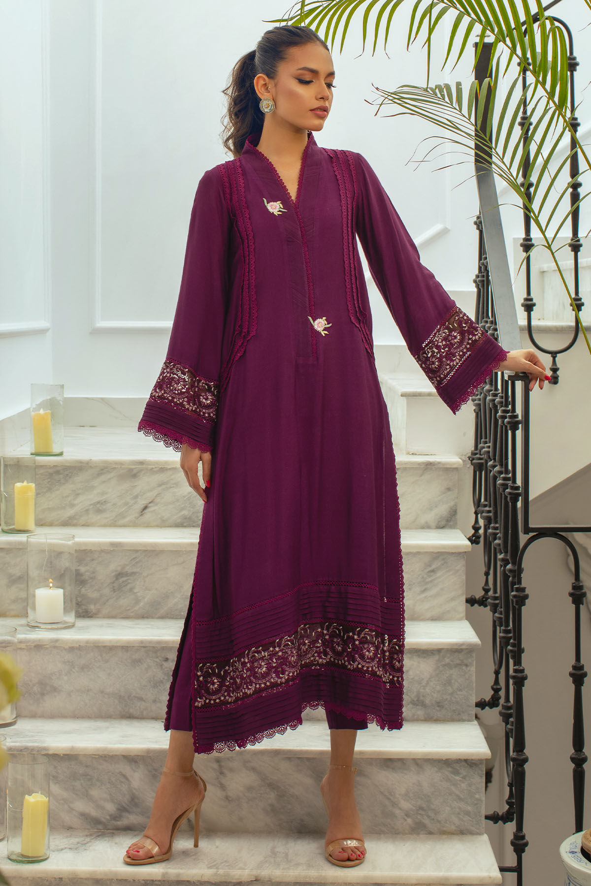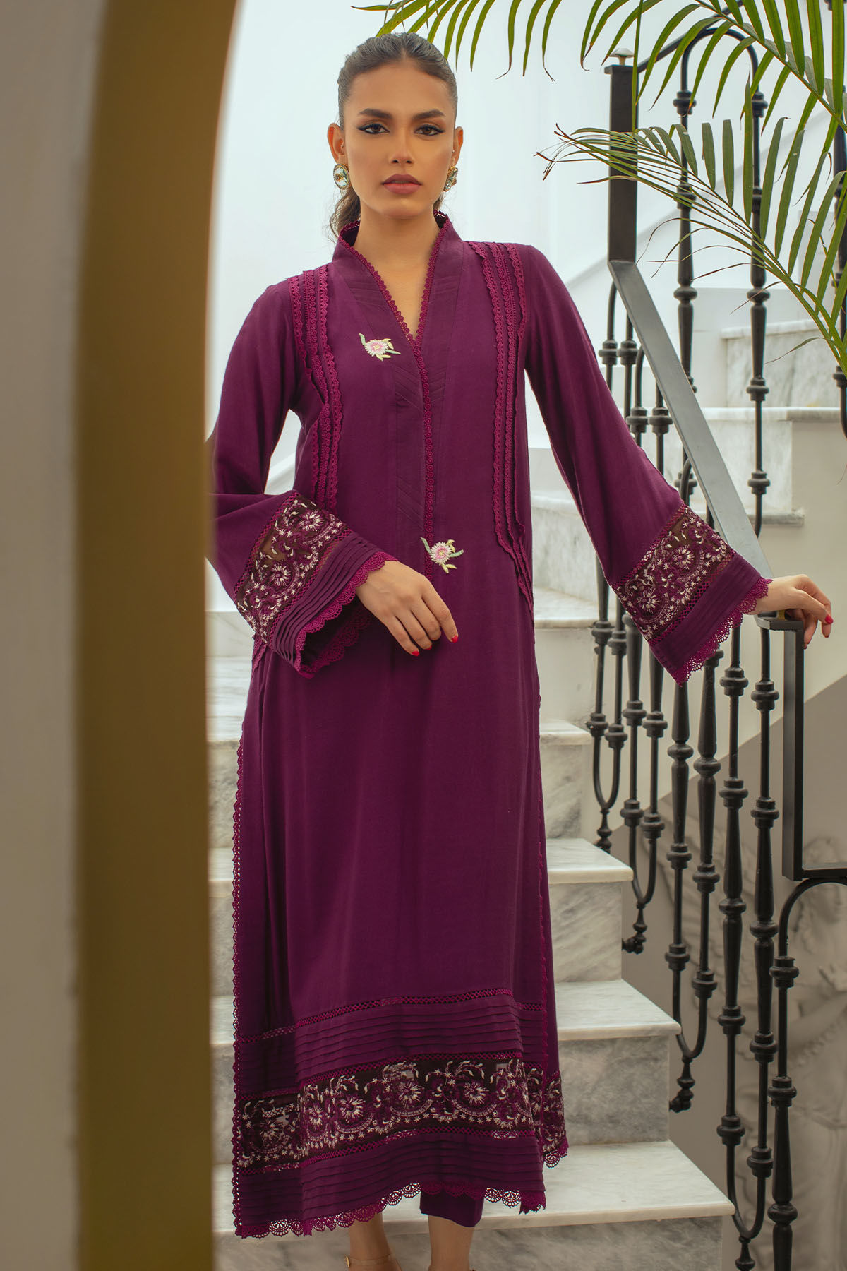 Color: Plum Fabric: Cotton Net Work Details: Embroidered