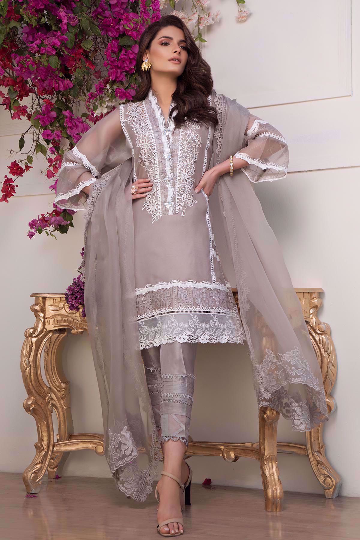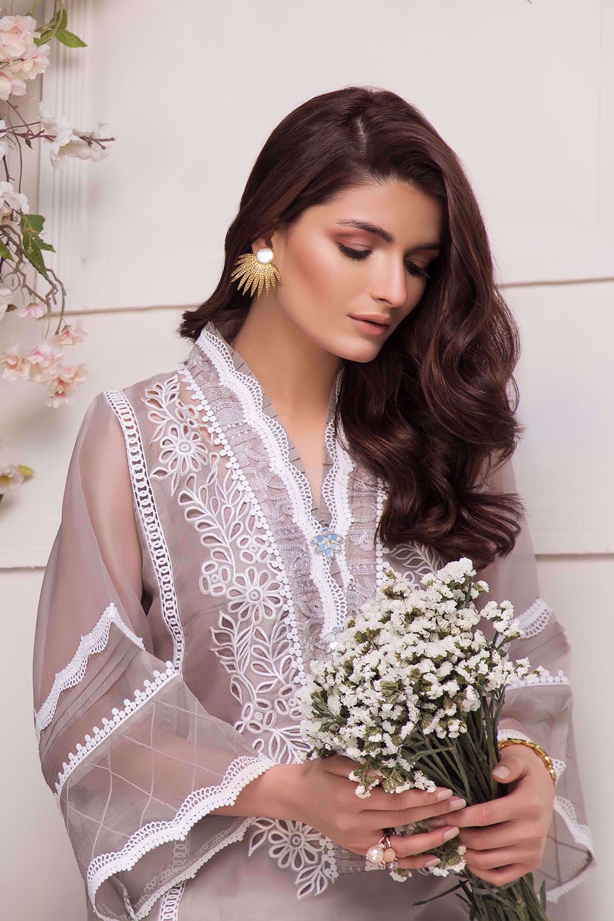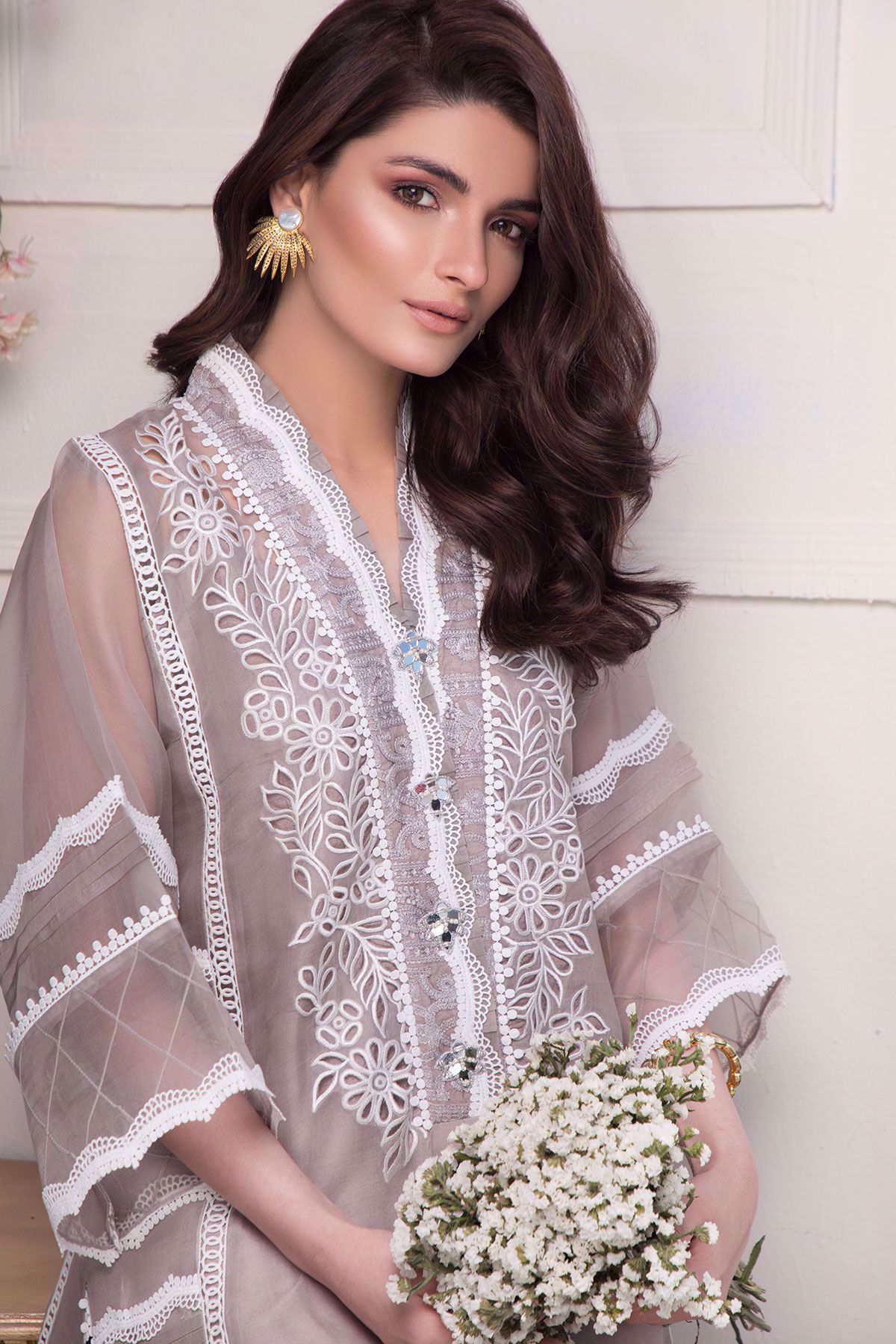 Color: Grey Fabric: Organza Work Details: Cutwork Details