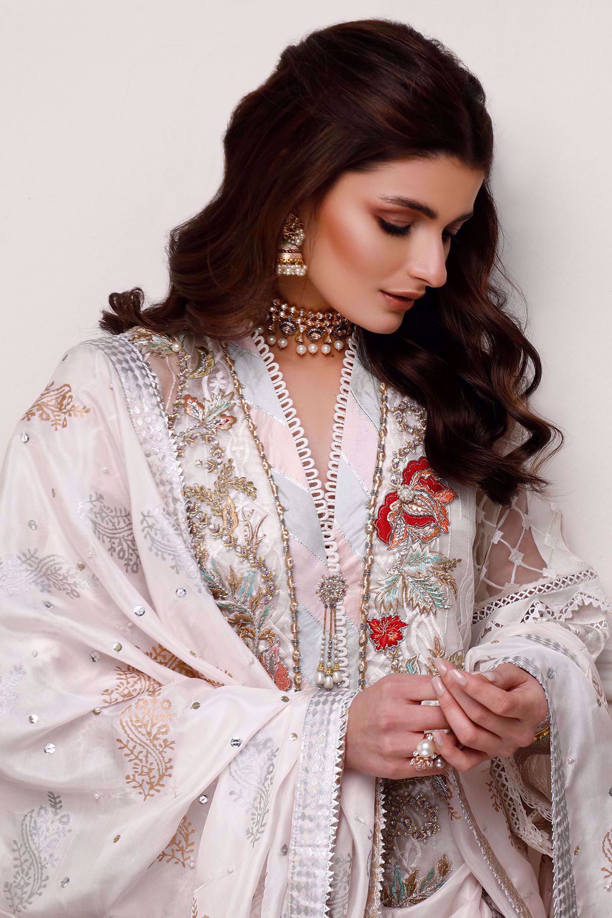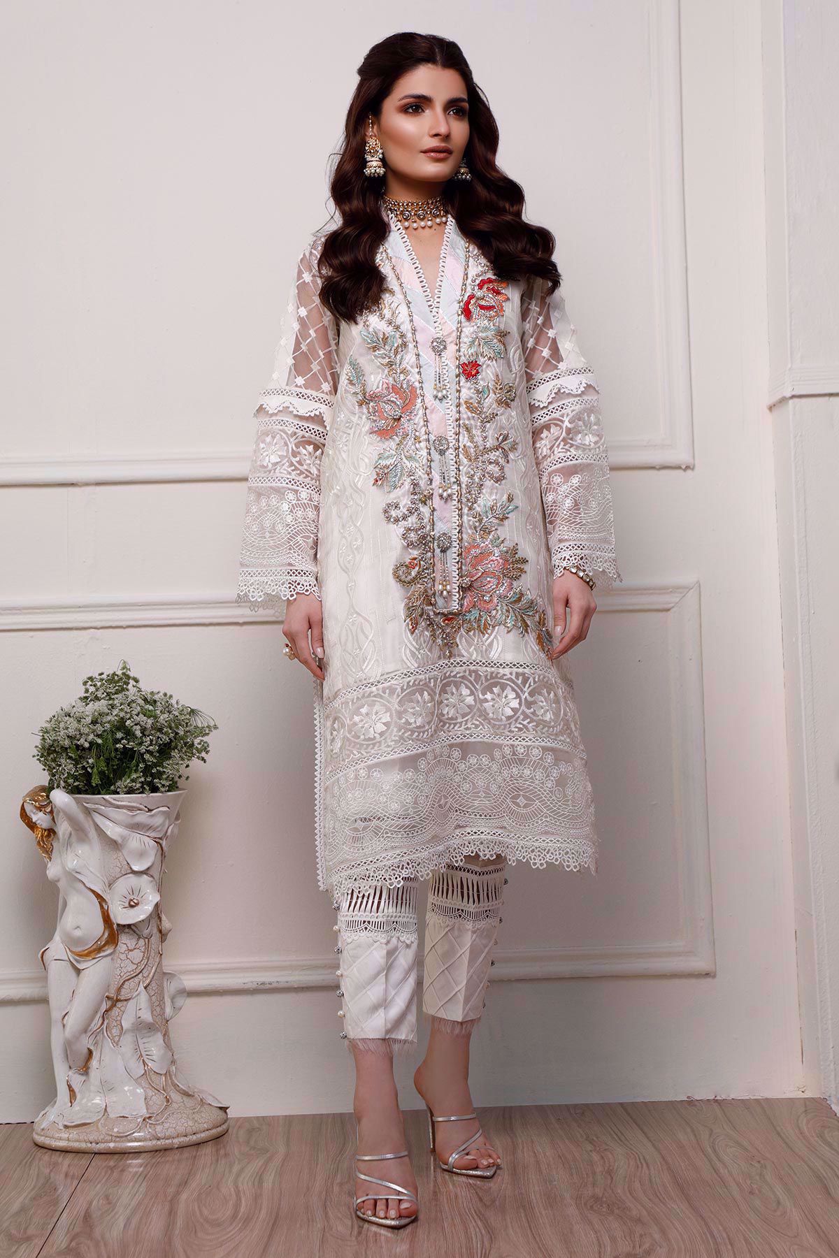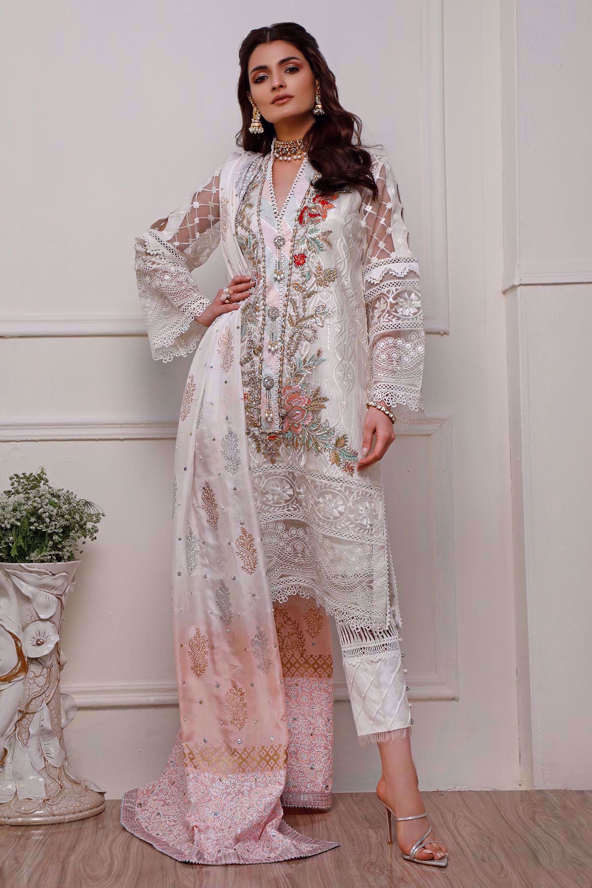 Color: White Fabric: Organza Work Details: Embroidered