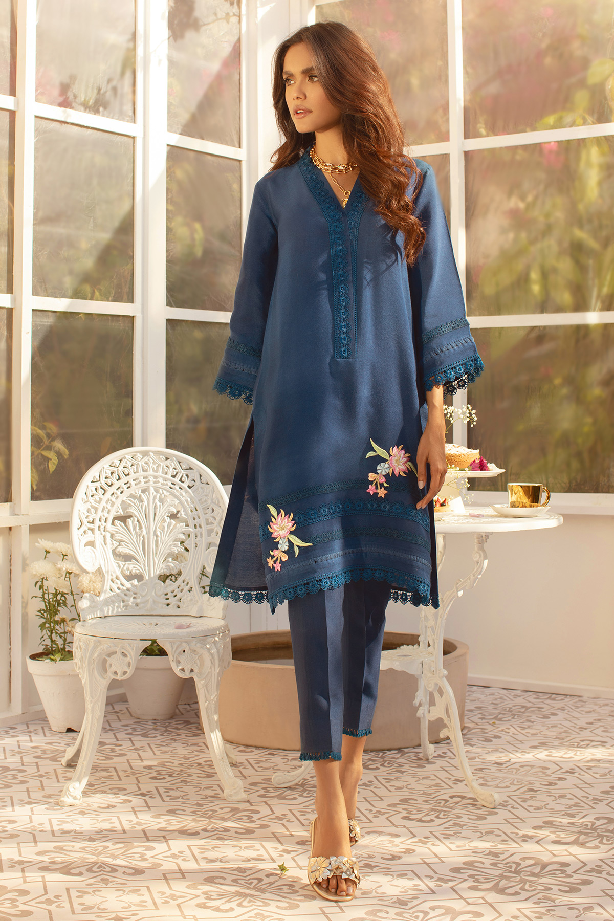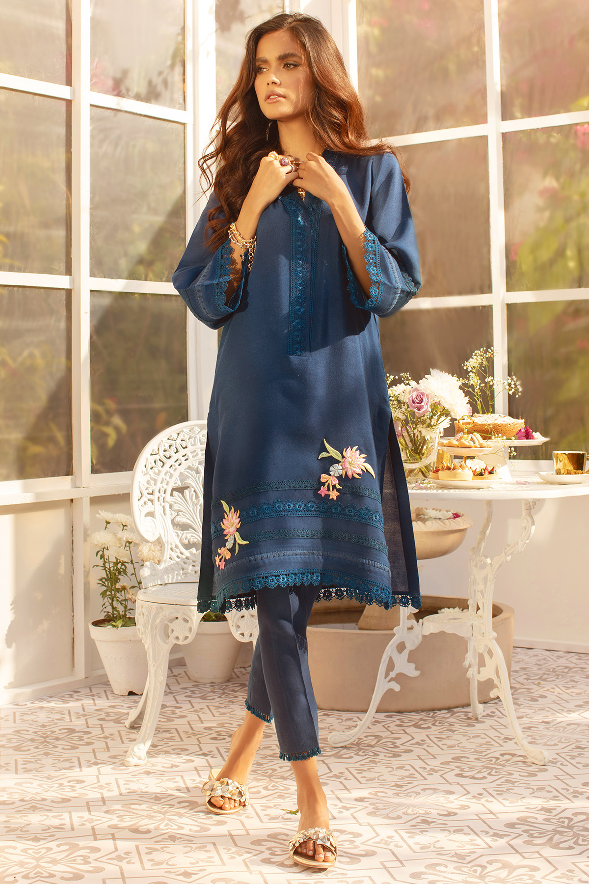 Color: Berry Blue Fabric: Cotton Net Work Details: Embroidered