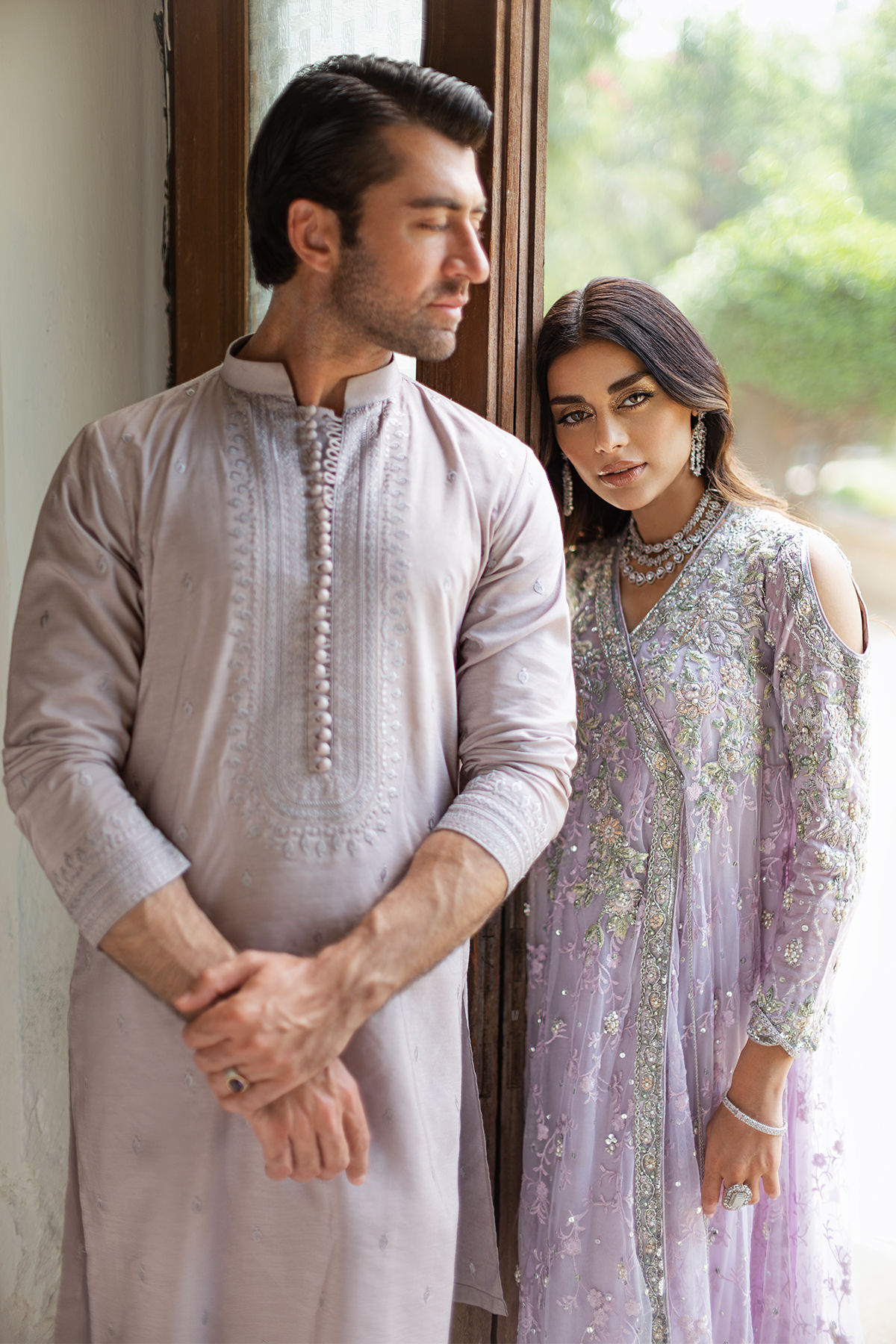 Color: Lilac Fabric: Embossed Net Work Details: Embroidered