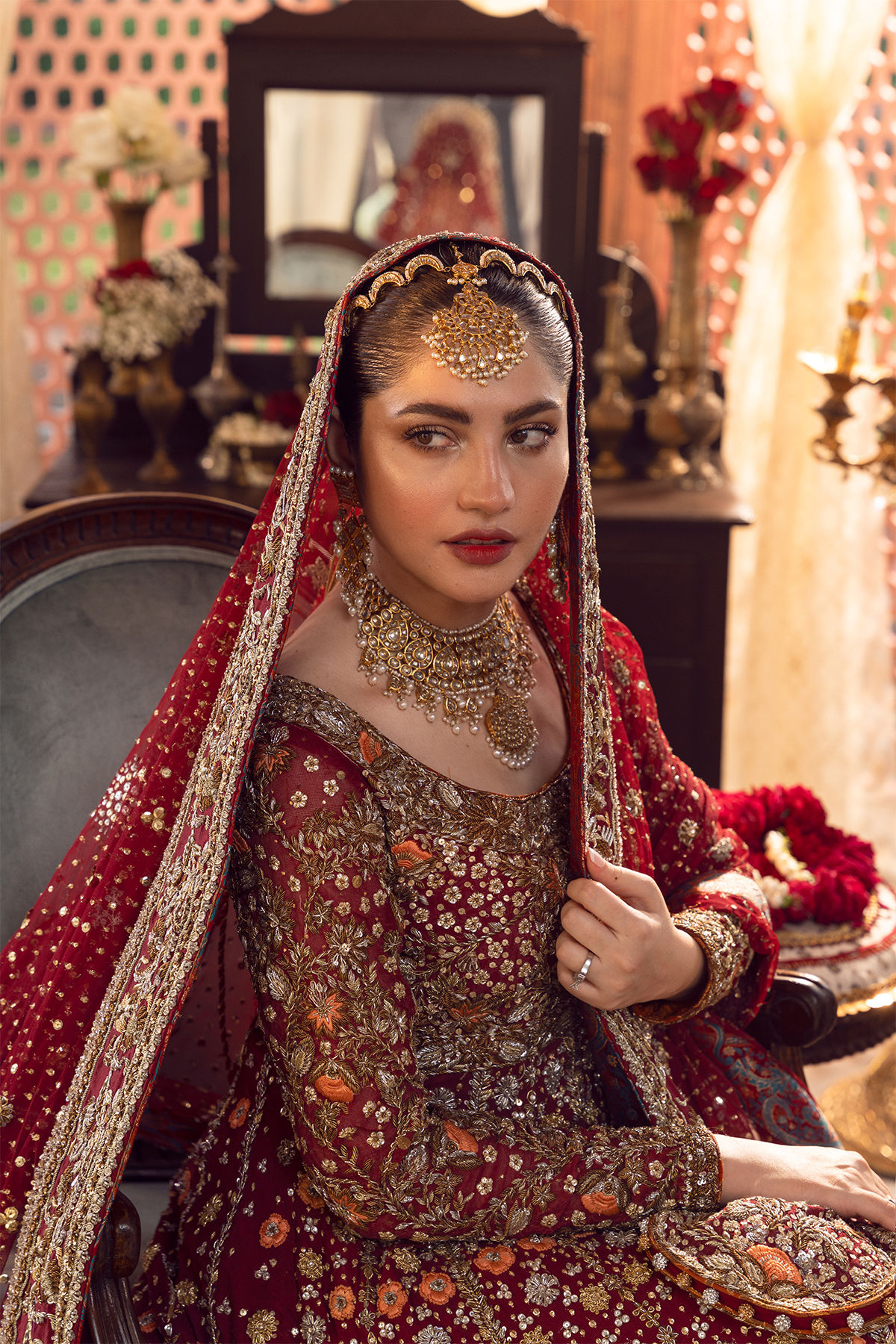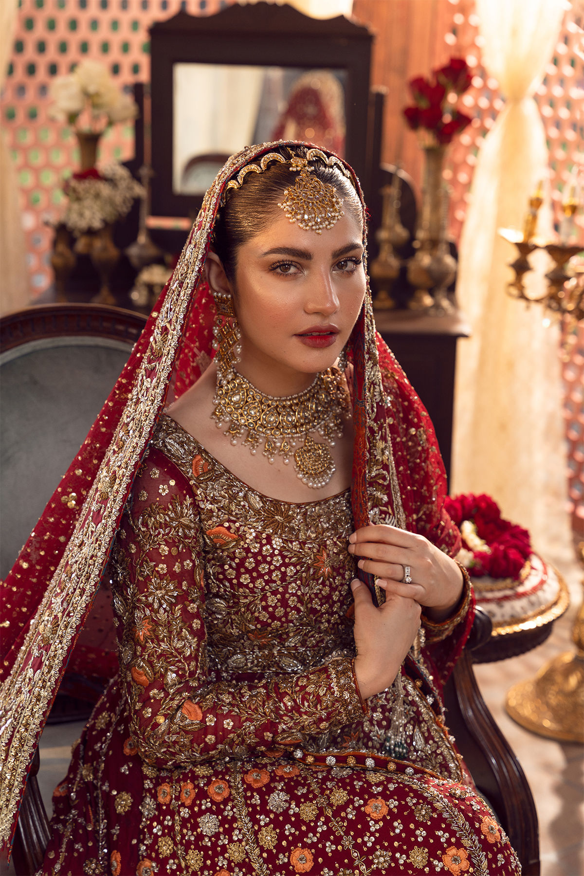 Color: Deep Crimson Fabric: Silk Net Work Details: Embroidered and Embellished