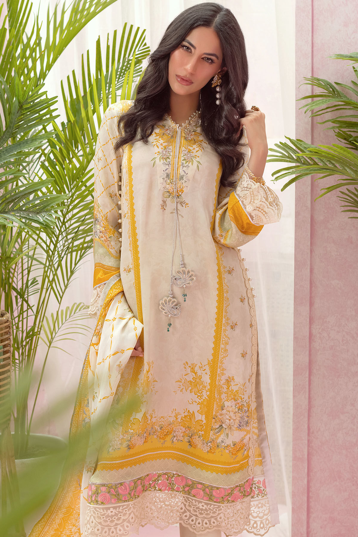 Long silhouette silk shirt in dreamy ochre and buttermilk shade featuring magical floral details. The florals on the neckline are enhanced with zardozi and light catching crystals. The handcrafted peacock tassels on center front are made of resham and zardozi details. The hem of the shirt is adorned with floral embroidered panel and schiffli details. The side slits of the shirt are adorned with matching lace details and further enhanced with pearls. The shirt is paired with matching silk dupatta to set you apart this festive season.