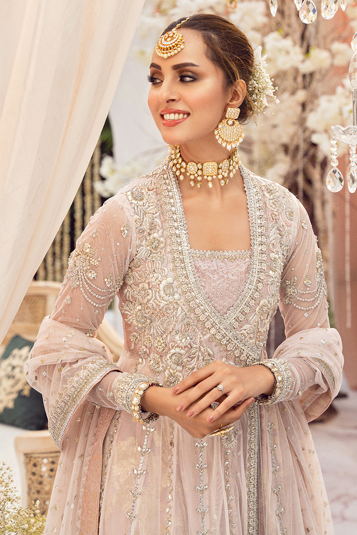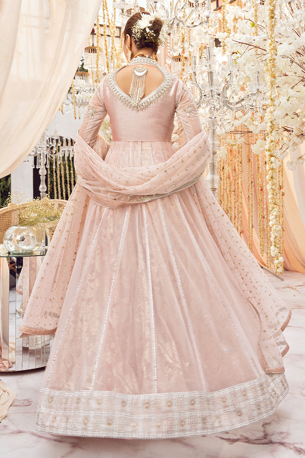 Color: Blush Pink Fabric: Net Work Details: Embroidered