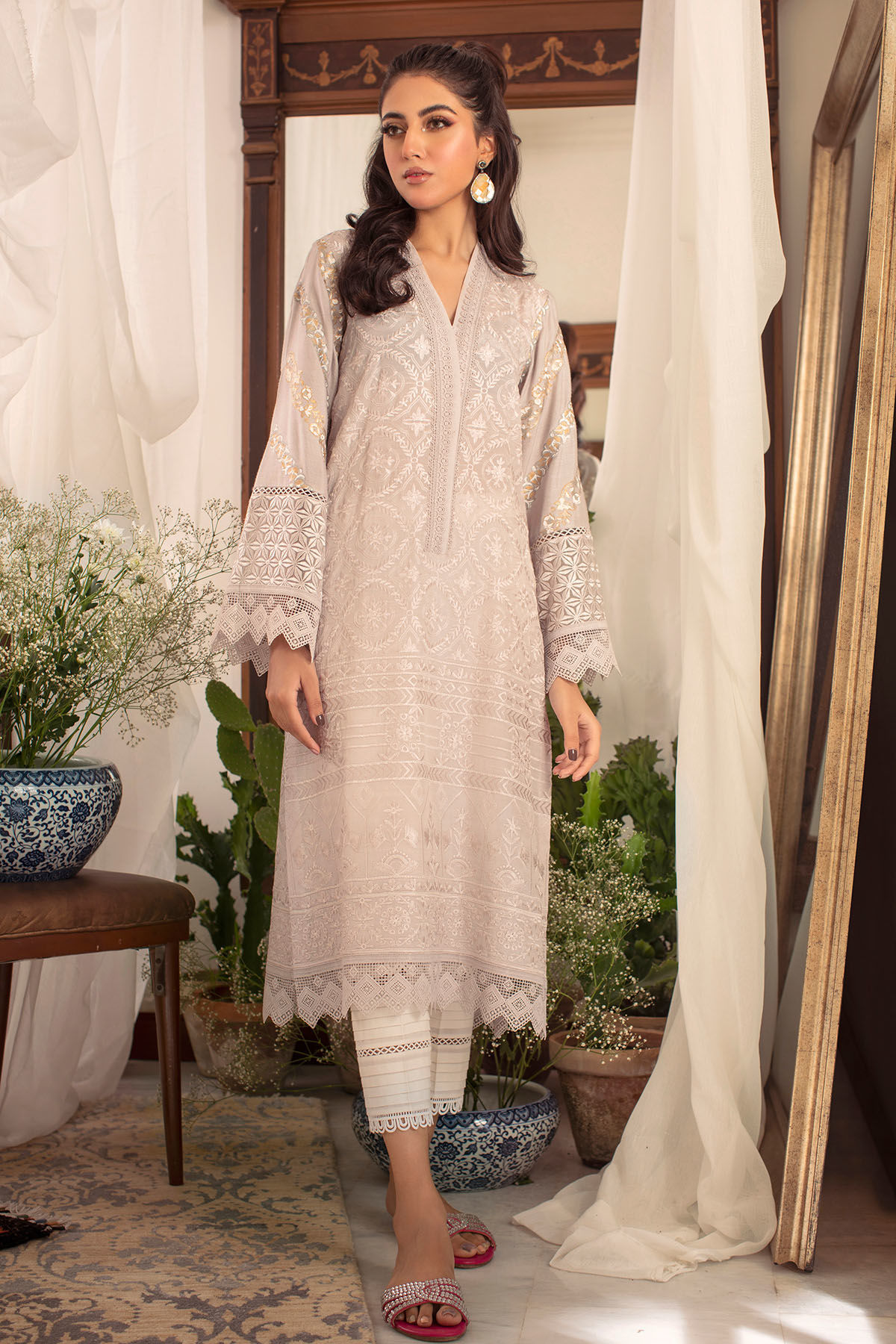 Color: Steel Grey Fabric: Raw Silk Work Details: Self-Embroidered