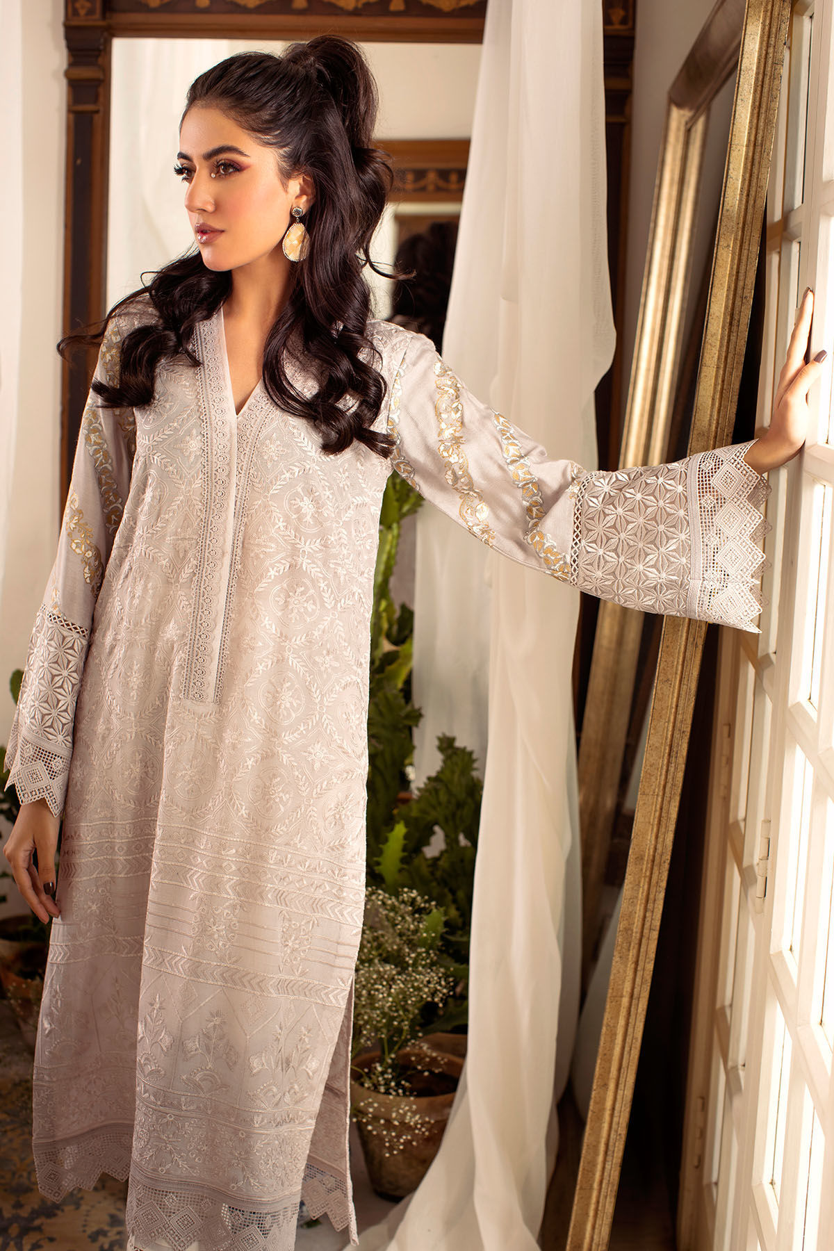 Color: Steel Grey Fabric: Raw Silk Work Details: Self-Embroidered