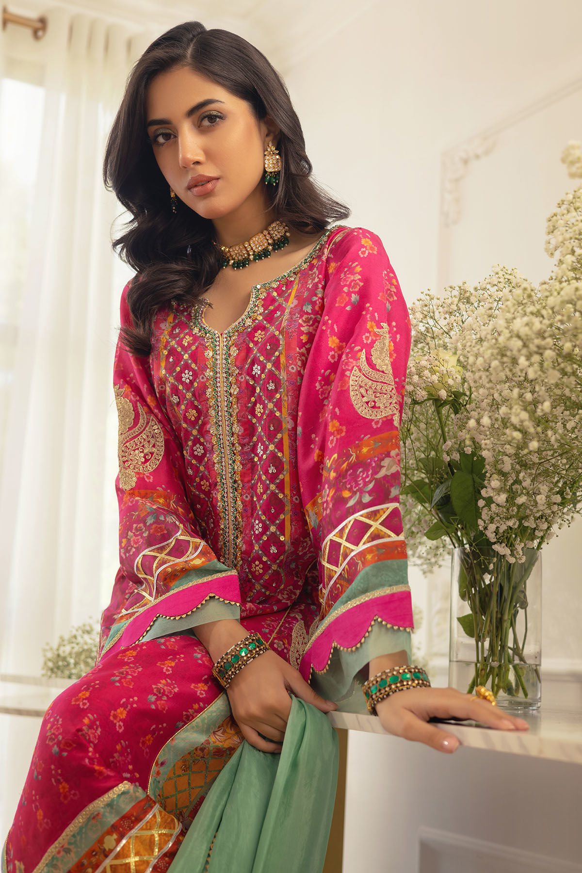 Color: Pink Fabric: Pure Raw Silk Work Details: Digitally Printed
