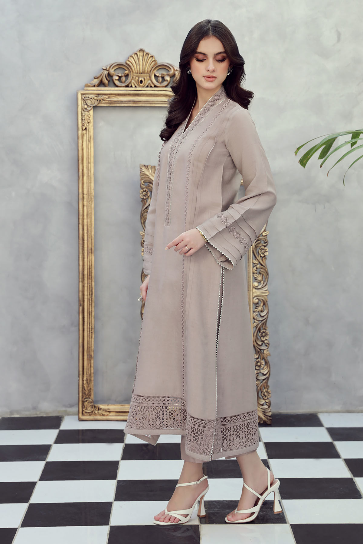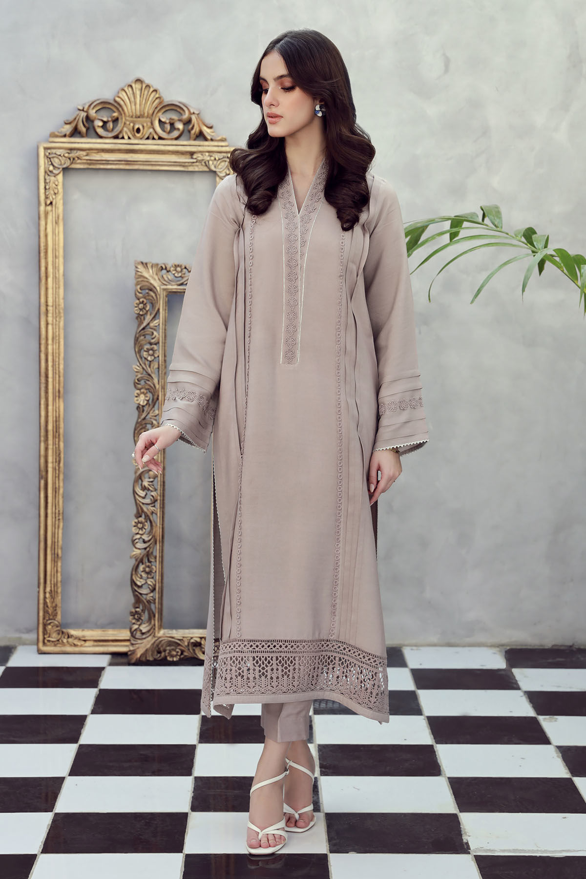 Color: Taupe Fabric: Cotton Net Work Details: Lace Detailing