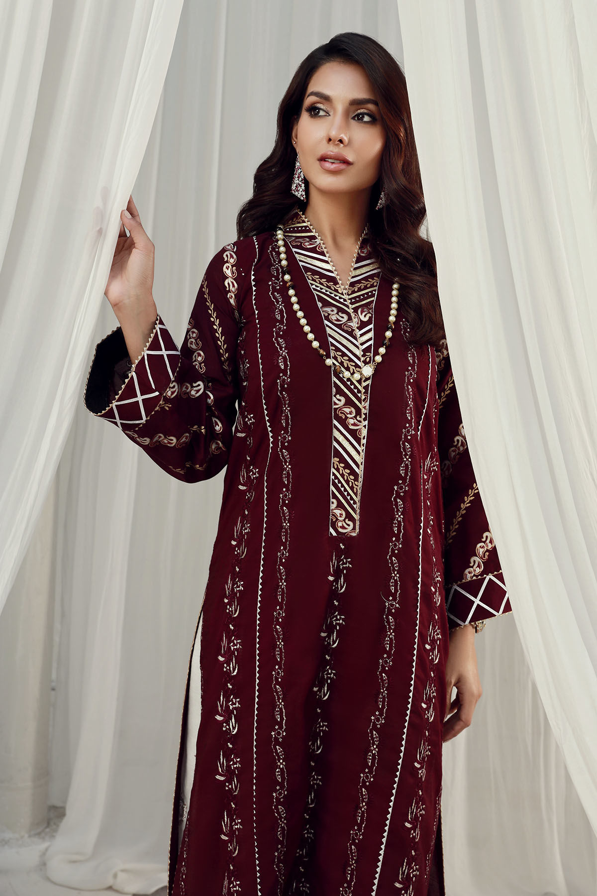 Color: Deep Maroon Fabric: Raw Silk Work Details: Embroidered