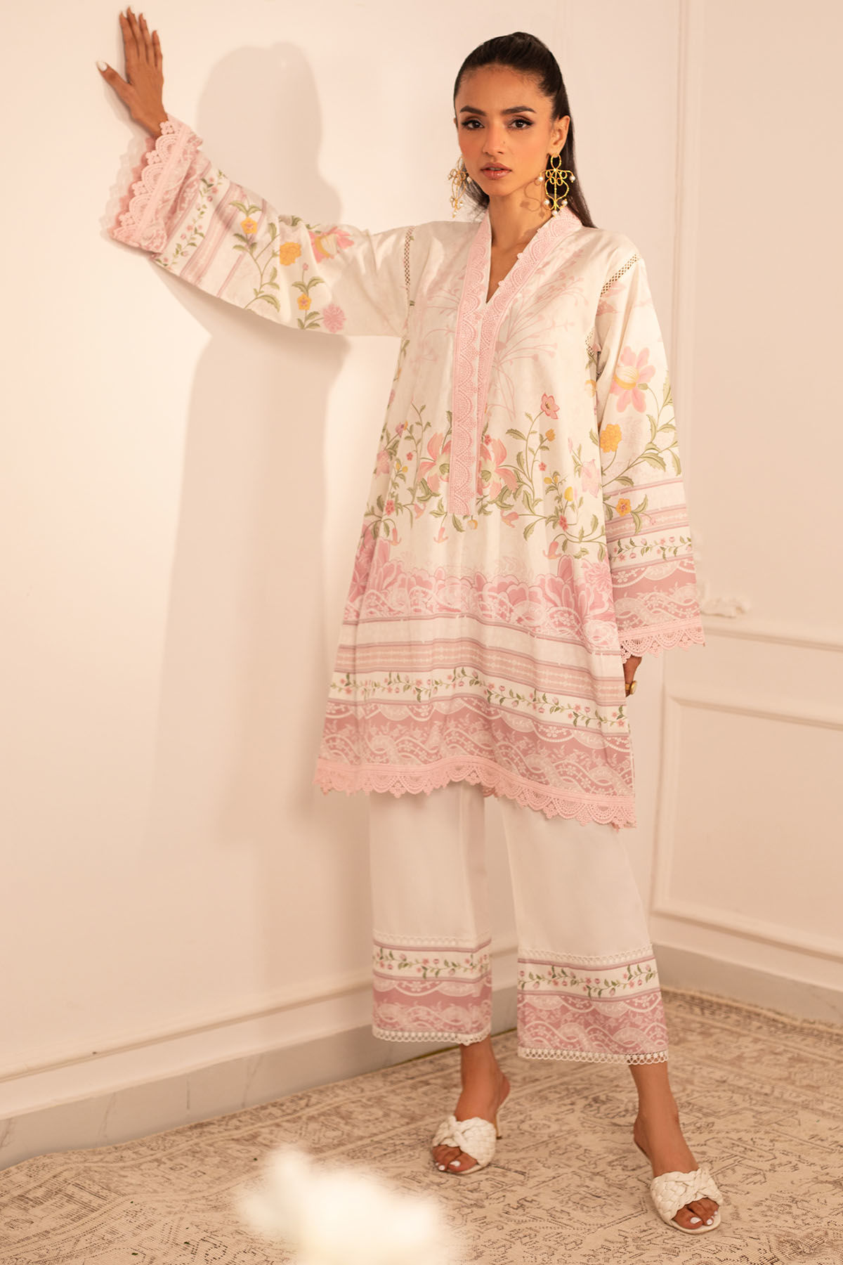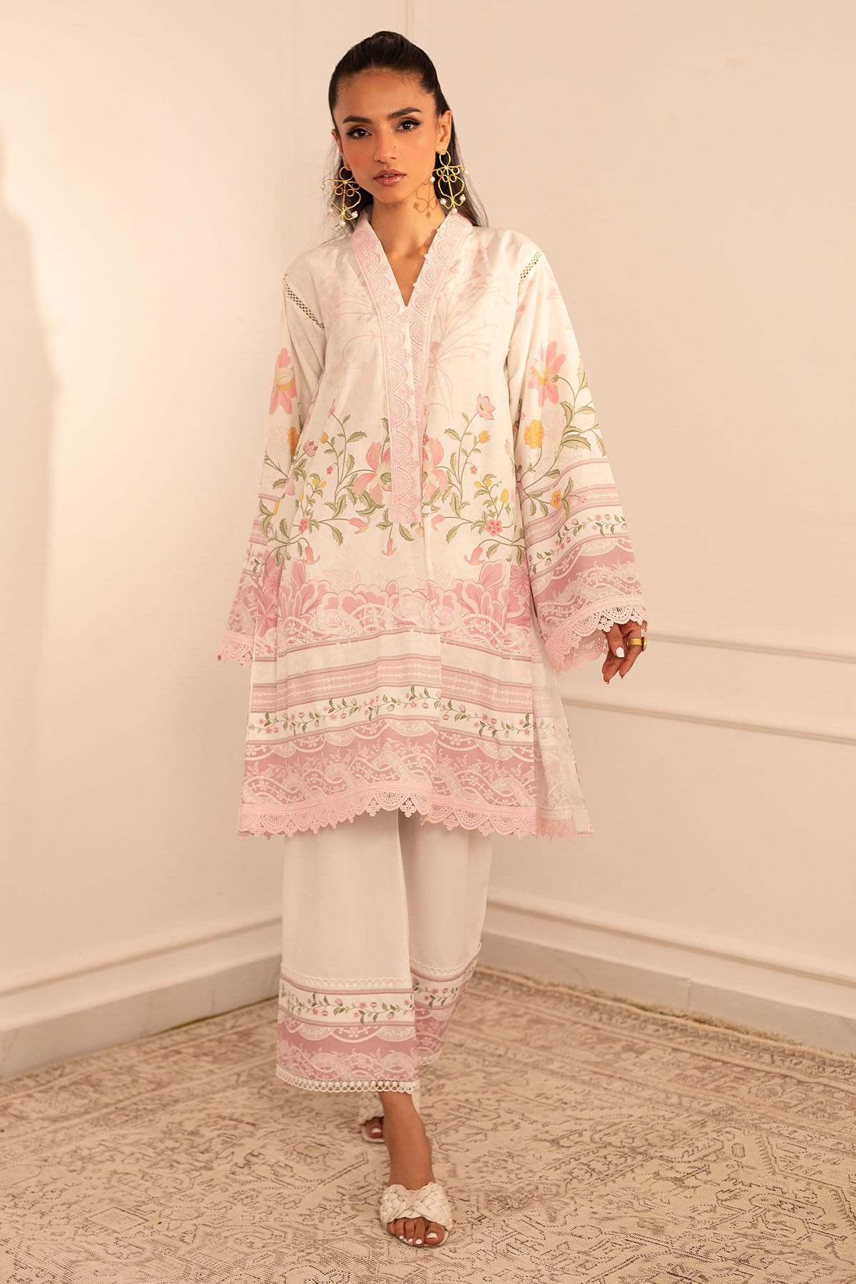 Color: White and Pink Fabric: Crepe Silk Work Details: Printed