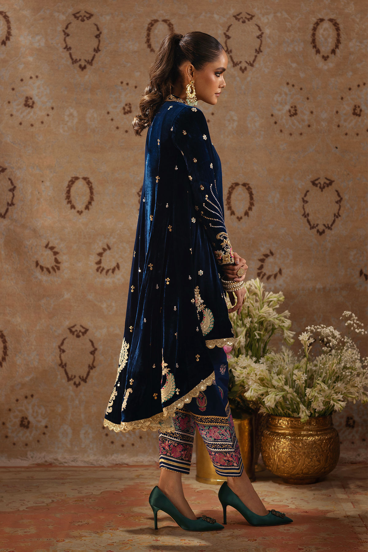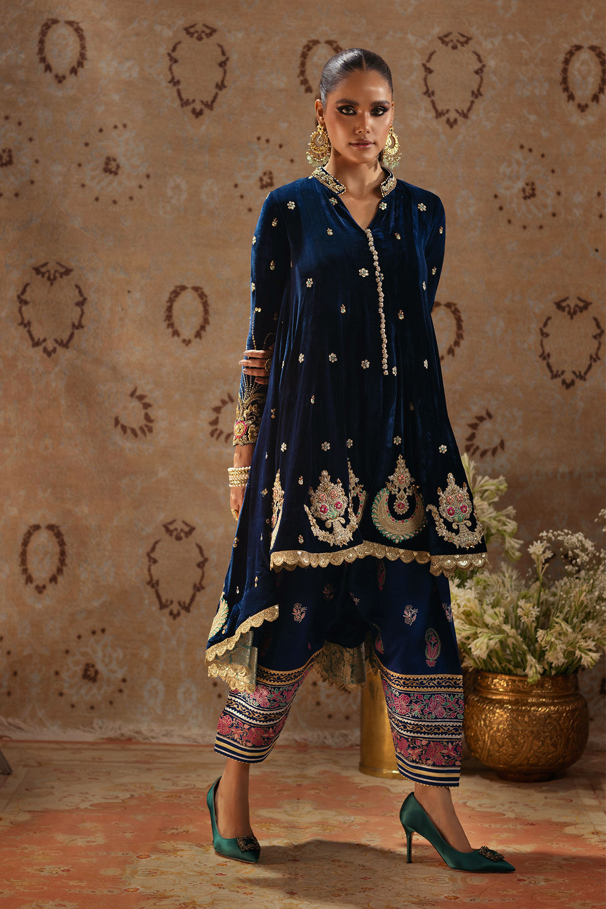 Color: Deep Blue Fabric: Velvet Work Details: Embroidered And Embelished