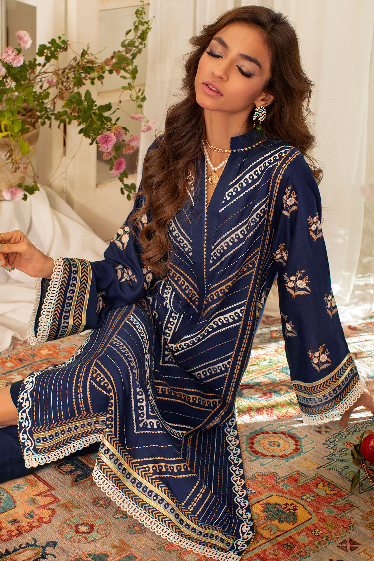 Color: Navy Blue Fabric: Cotton Net Work Details: Block Printed