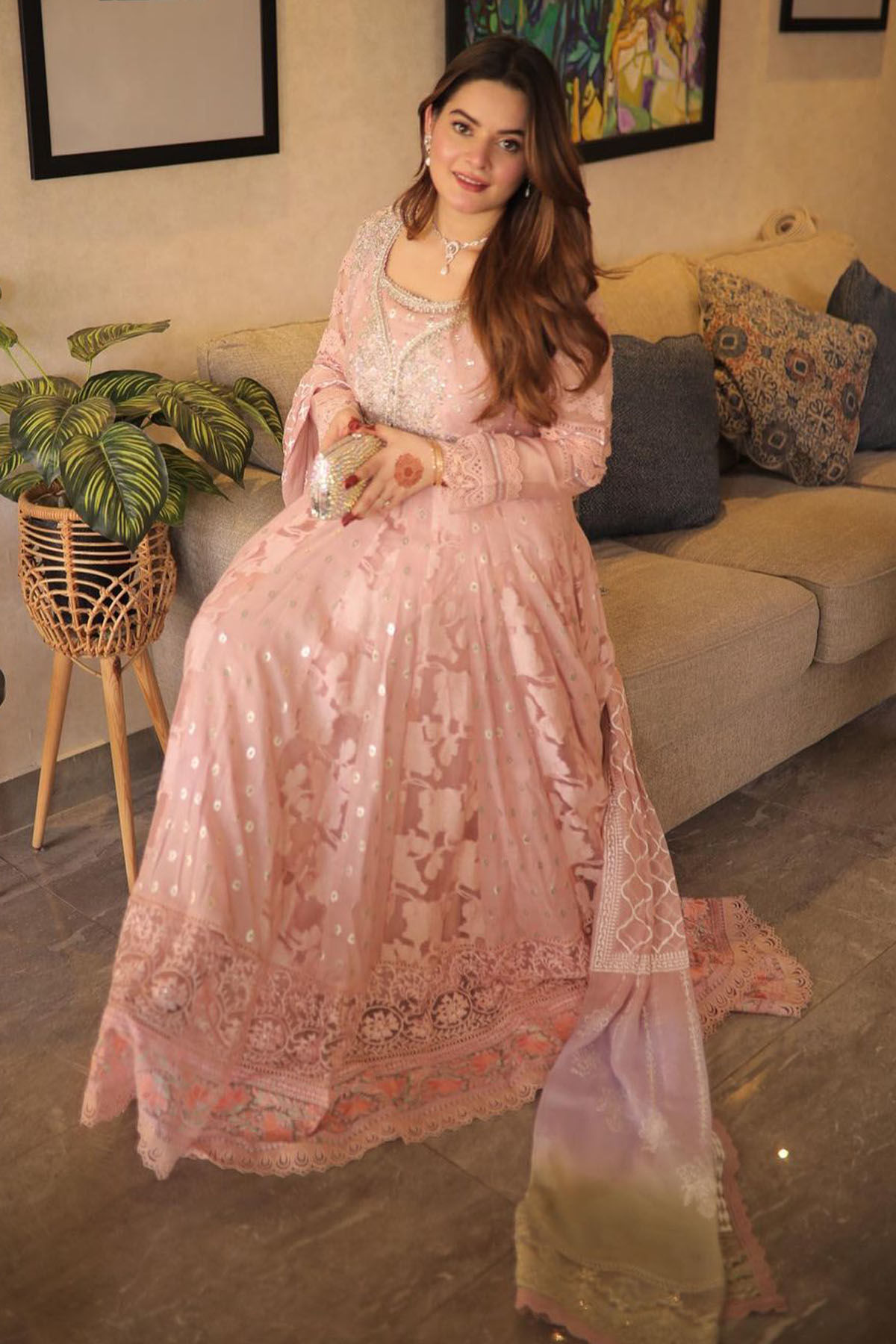 Color: Chai Pink Fabric: Organza and khaadi Silk Work Details: Zardozi Detailing