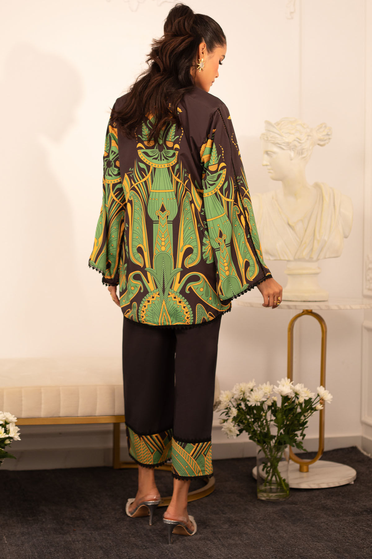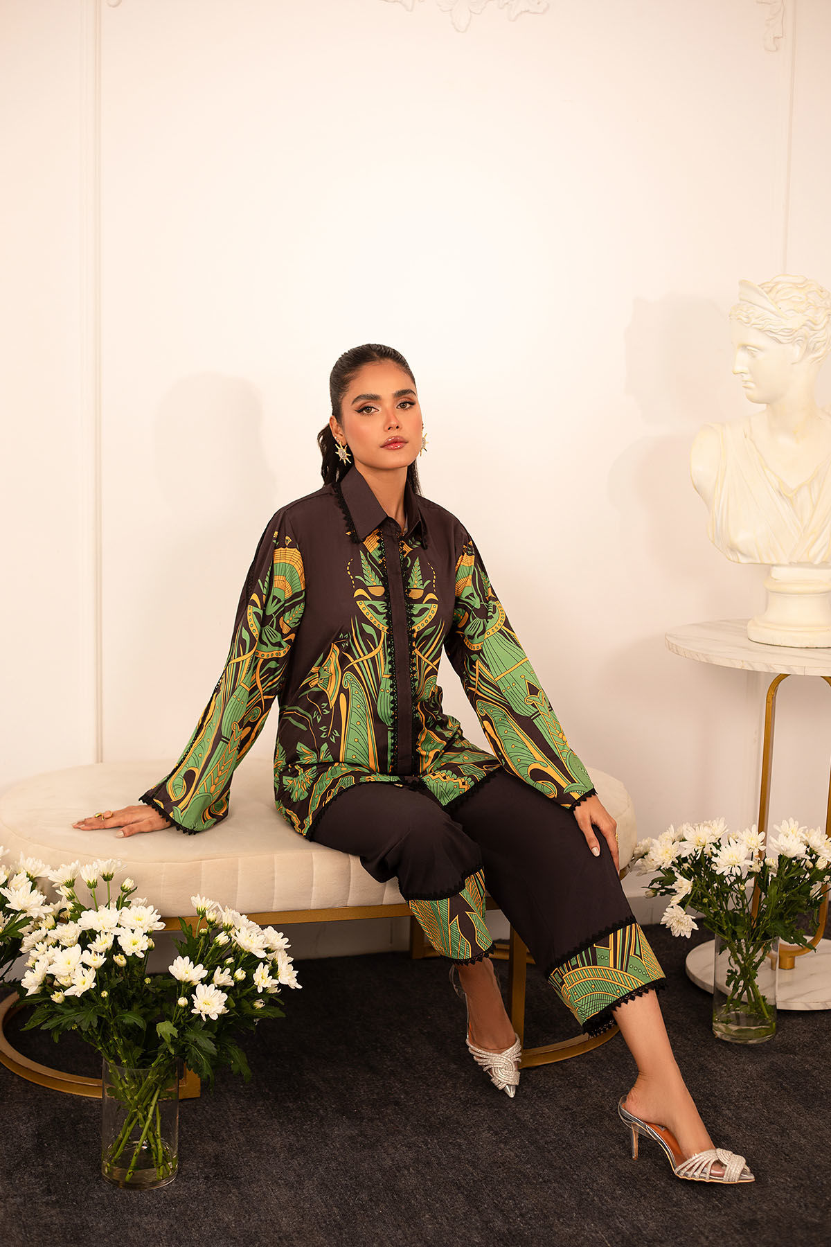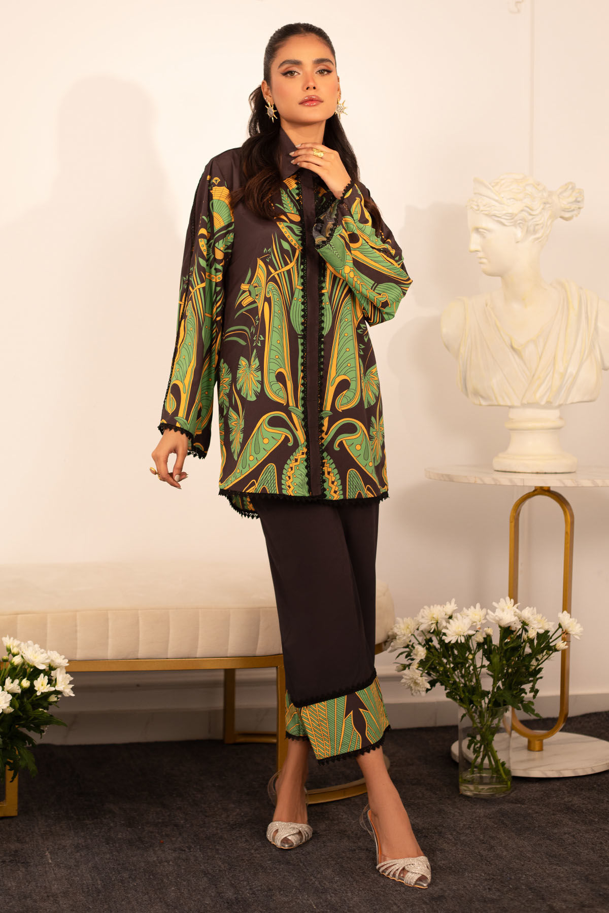 Color: Black and Green Fabric: Crepe Silk Work Details: Printed