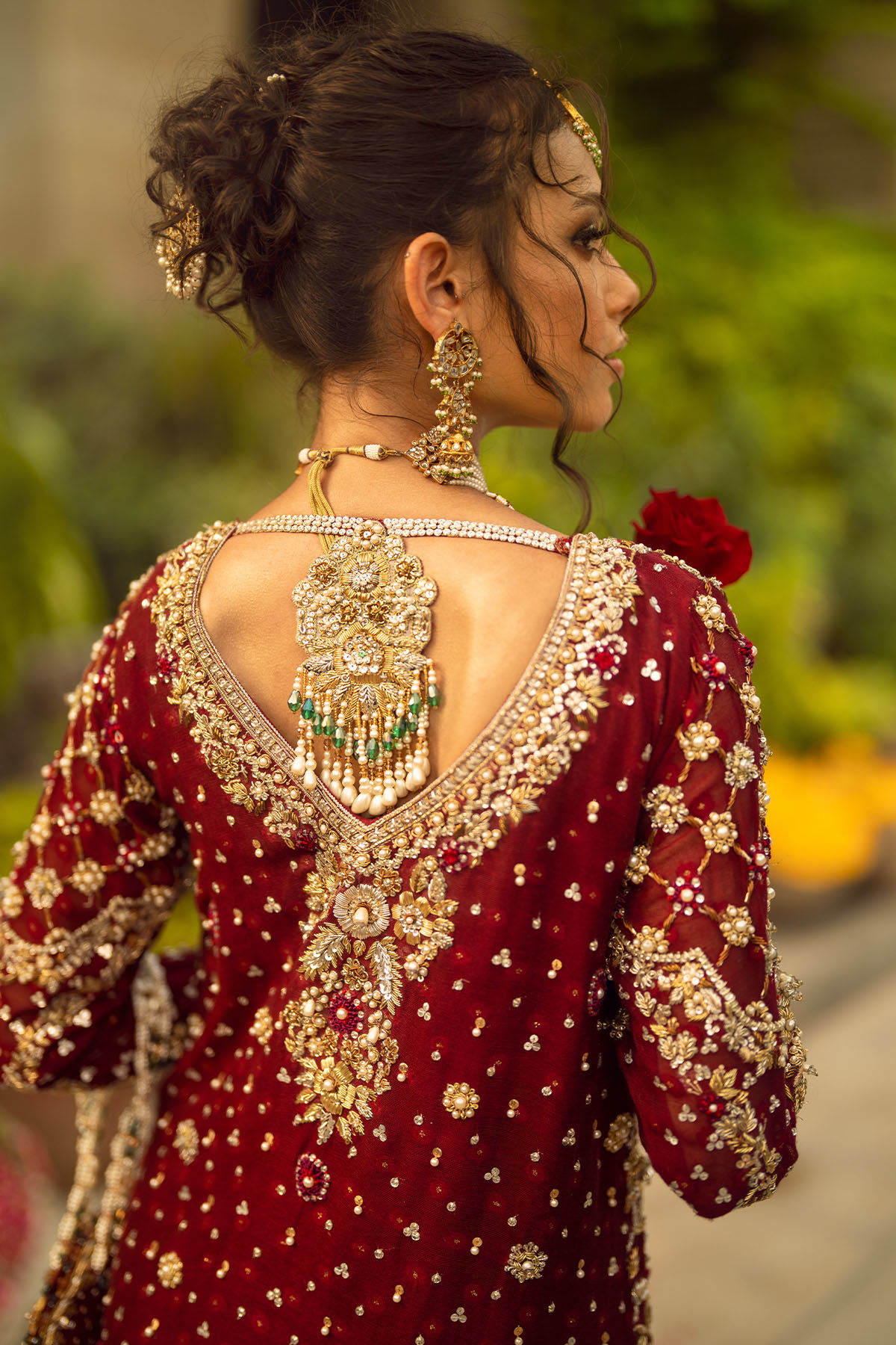 Color: Deep Crimson Fabric: Pure Silk Net Work Details: Embellished and Embroidered