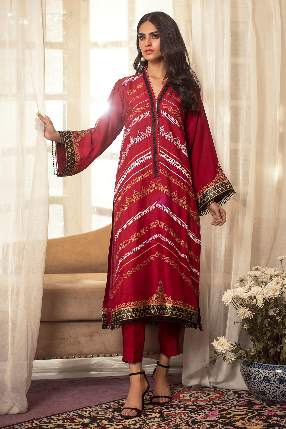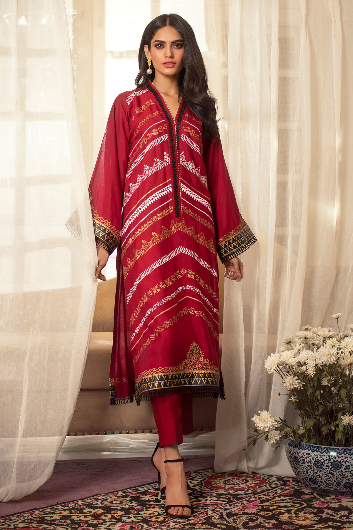 Color: Deep Crimson Fabric: Cotton Net Work Details: Hand Block Printed